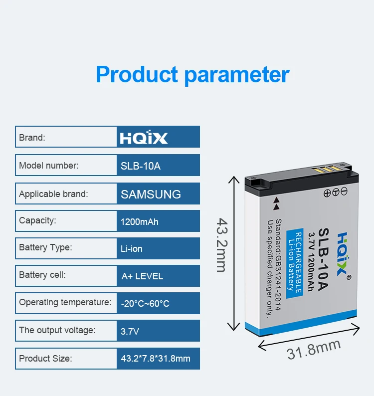 Аккумулятор HQIX для Samsung WB750 WB800F WB850F WB1100F WB2100 ES55 ES60 EX2F