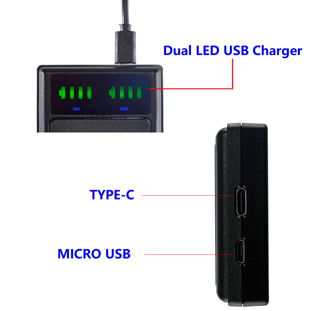 Тонкое светодиодное двойное зарядное устройство USB + 2 аккумулятора для