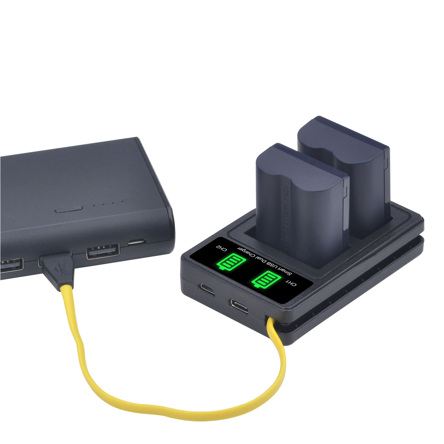 Маленький и легкий со съемным шнуром, 2 независимых слота для зарядки могут заряжать 2 батареи одновременно или заряжать одну батарею отдельно.