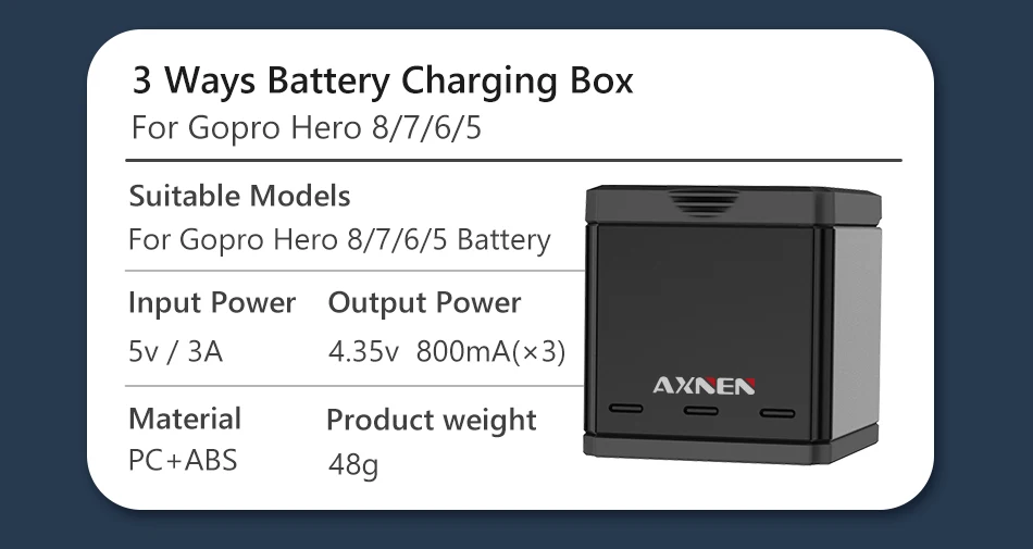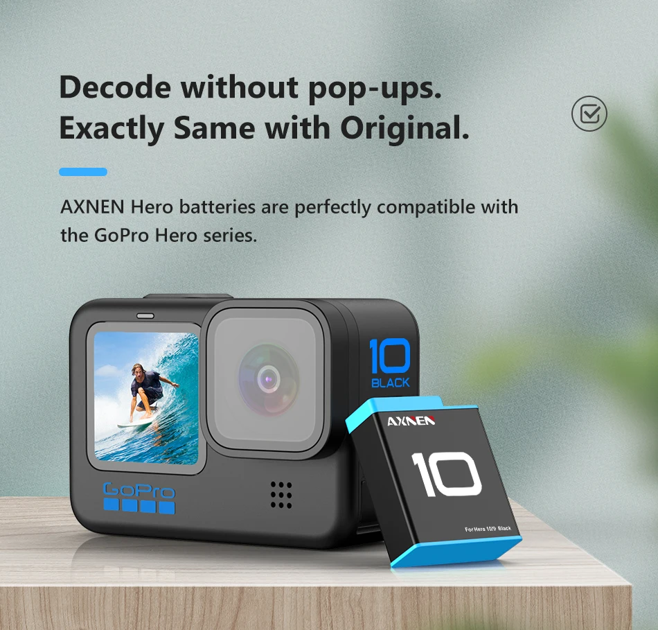 Аккумуляторы AXNEN Hero идеально совместимы с серией GoPro Hero.