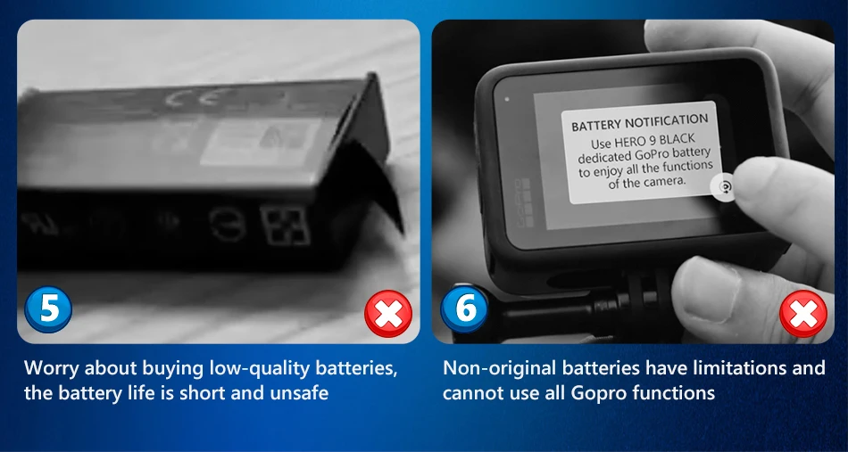 6-неоригинальные батареи имеют ограничения и не могут использовать все функции Gopro