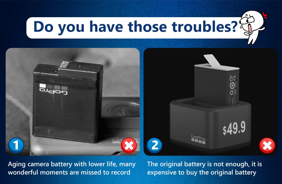 Наши батареи сертифицированы UL, UN, ROHS литиевые батареи и используются полностью декодированный чип. Аккумуляторы и зарядное устройство полностью совместимы с камерой GoPro hero, работает так же, как и официальные;