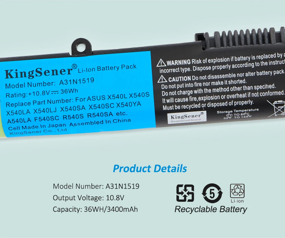 Аккумулятор KingSener 3400 мАч A31N1519 для ASUS X540 X540L X540LA X540LJ X540S X540SA X540SC X540YA A540 A540LA F540SC R540S R540SA