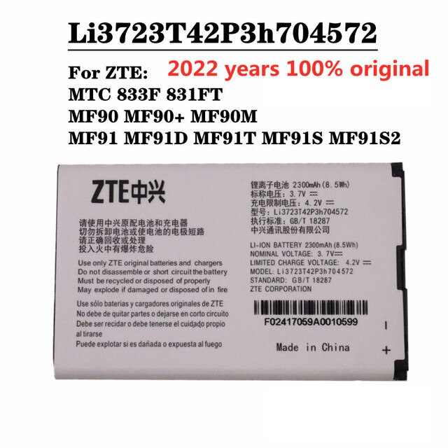 * Совместимость с: Для ZTE MTC 833F 831FT MF90 MF90 + MF90M MF91 MF91D MF91T MF91S MF91S2 батарейка роутера