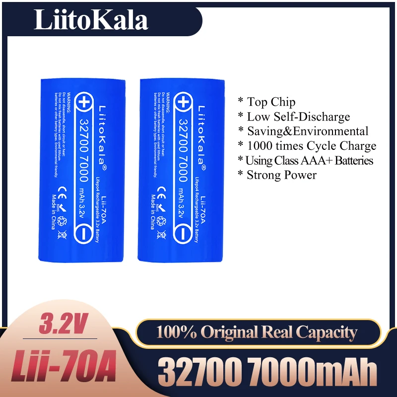 Аккумулятор LiitoKala Lii-70A 3,2 В, 32700 мАч, 6500 мАч, LiFePO4, 35 А, непрерывный разряд, максимум 55 А, высокая мощность