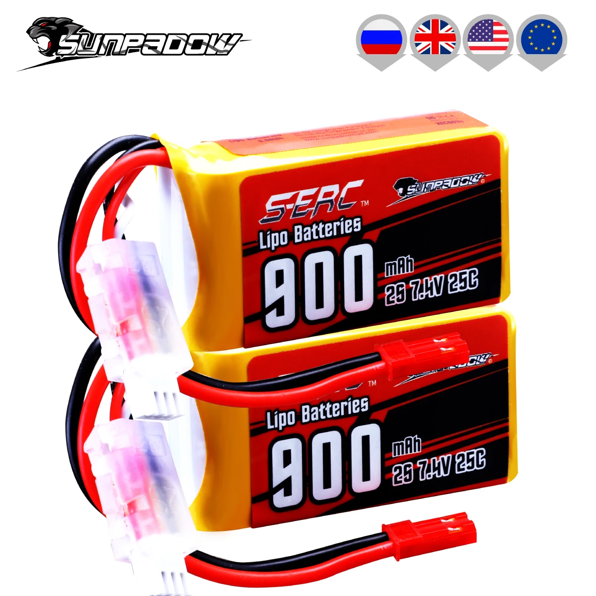 Аккумулятор Lipo Sunpadow 2S для радиоуправляемых самолетов, квадрокоптеров, 7,4 В, 900 мАч, 1350 мАч, 20C, 25C, 2 шт