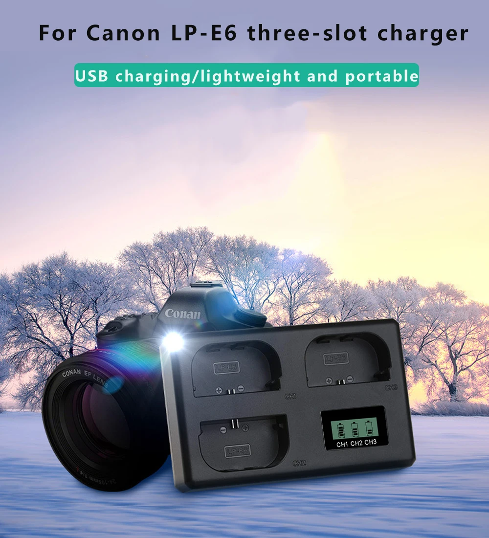 Аккумулятор LP E6 LPE6 LP-E6 E6N + зарядное устройство с 3 слотами для карт и ЖК-дисплеем для камер Canon EOS 5DS R 5D Mark II 5D Mark III 6D 7D 70D 80D