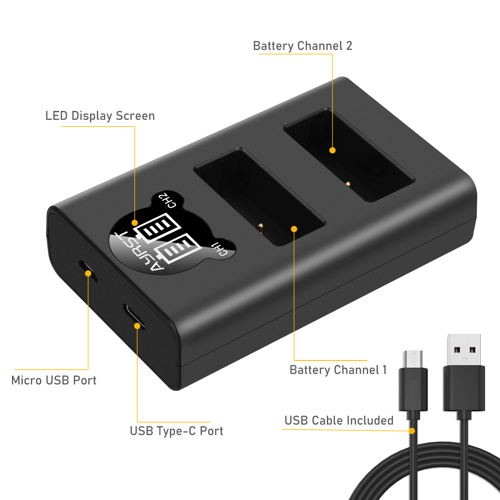 1. Вставьте 1 или 2 аккумулятора камеры в разъем двойного зарядного устройства USB.