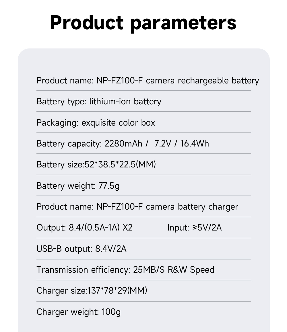 Название продукта: NP-FZ100-F зарядное устройство для камеры