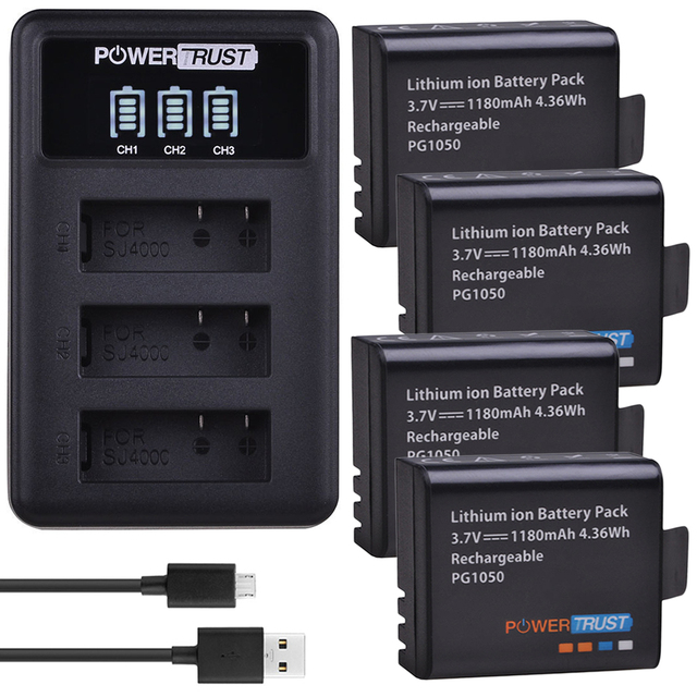 Аккумулятор PG1050, 4 шт., 1180 мА · ч, светодиодная подсветка, 3 слота, зарядное устройство USB для SJCAM SJ4000, M10, SJ5000, SJ5000X, для EKEN H9, H9R, H8R, H8, GIT, PG900