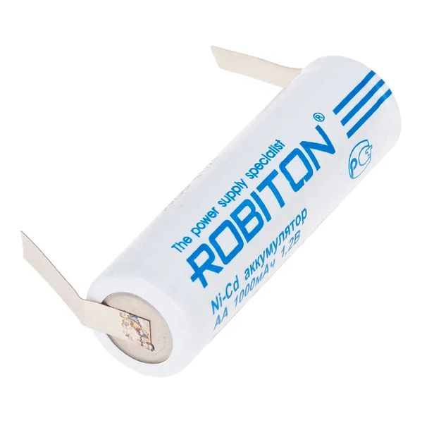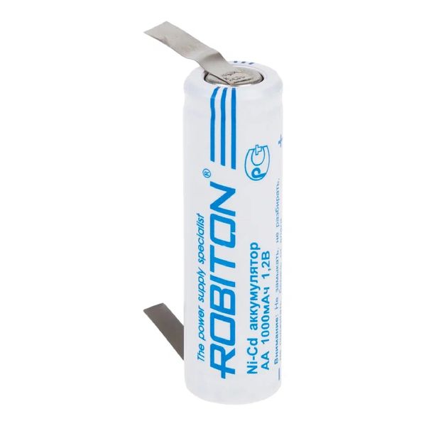 Аккумулятор ROBITON 1000NCAA с плоским контактом, NiCd, 1.2 В, 1000 мАч с выводами пластинками (лепестками) PK1