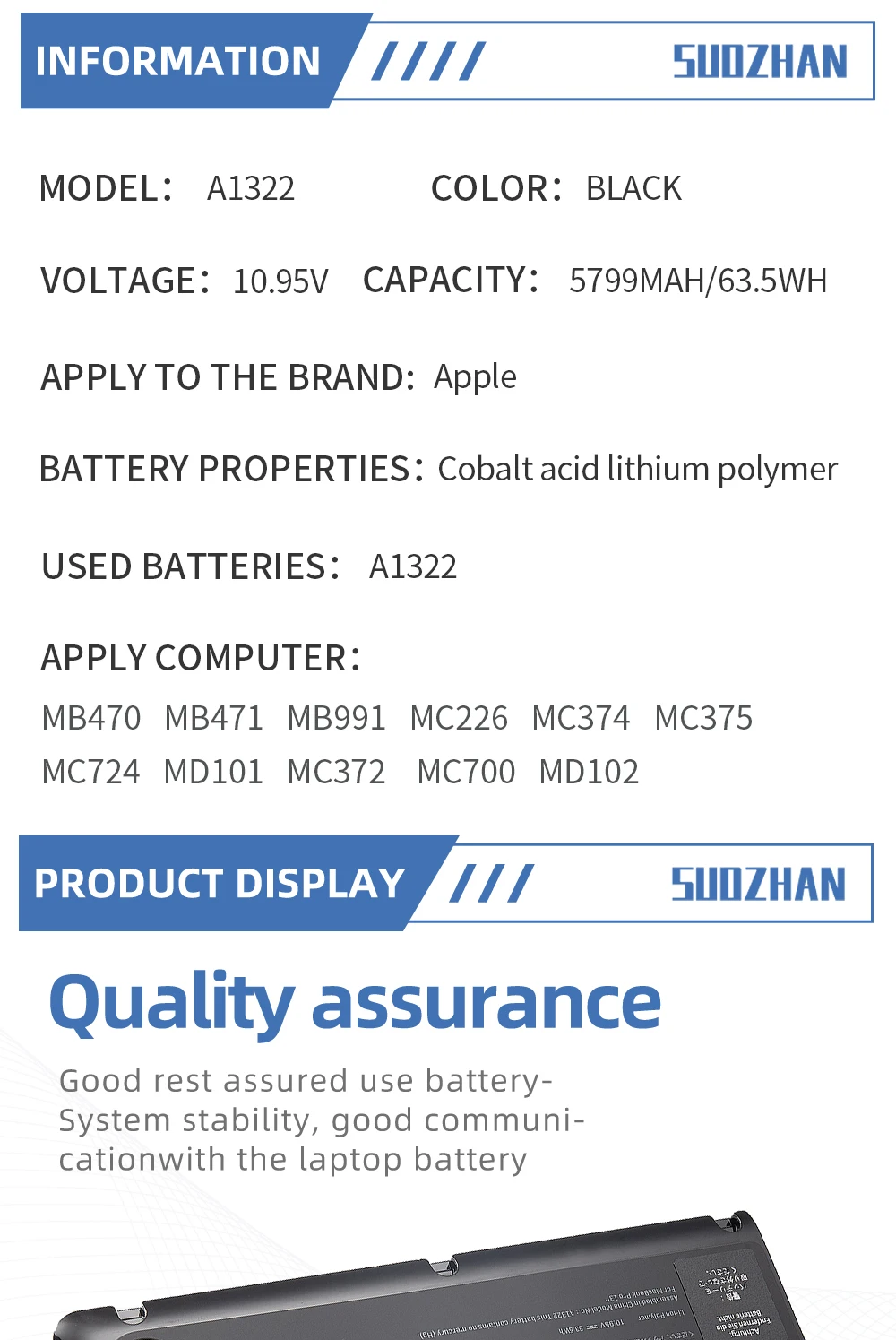 Аккумулятор SUOZHAN A1322 A1278 для Apple MacBook Pro, 13 дюймов, 2009, 2010, 2011, 2012, MB991LL/A, MB990LL/A, MB990J/A, MC700, MC374, MD101, MD314