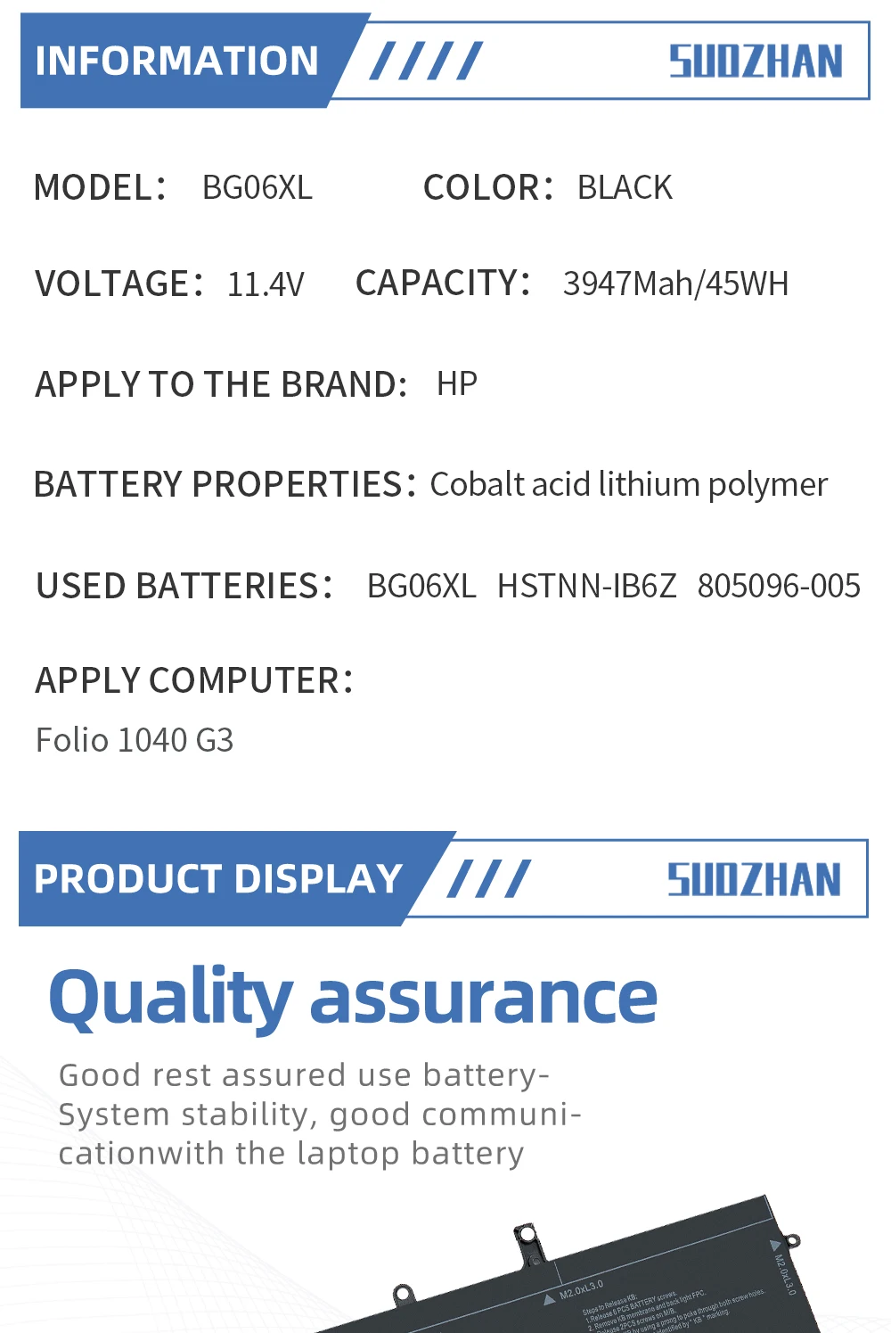 Аккумулятор SUOZHAN BG06XL для ноутбука HP EliteBook Folio 1040 G3 (P4P90PT) Φ 804175-1B1 804175-1C 804175-181