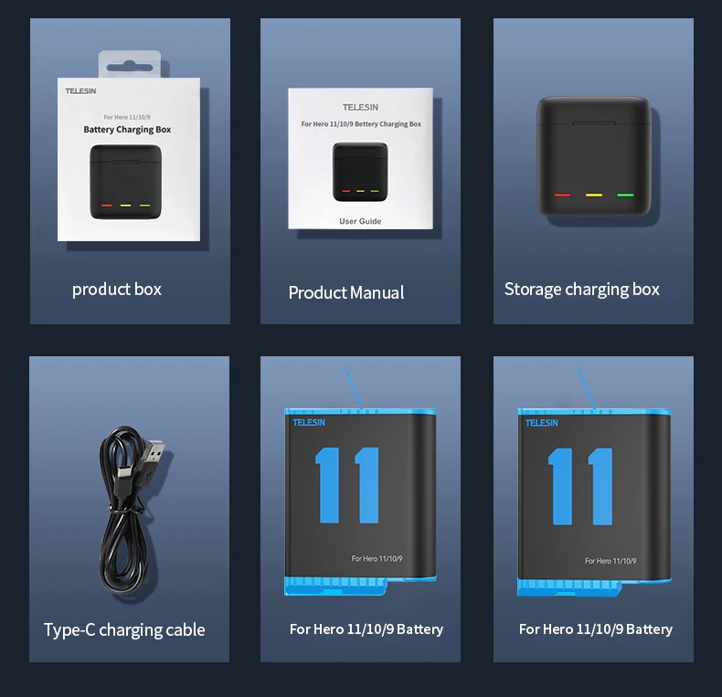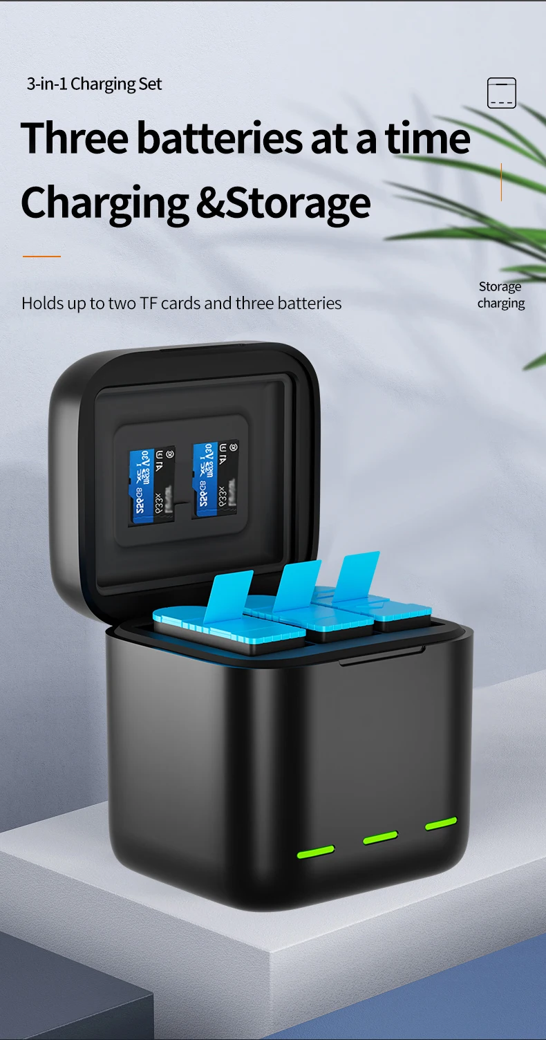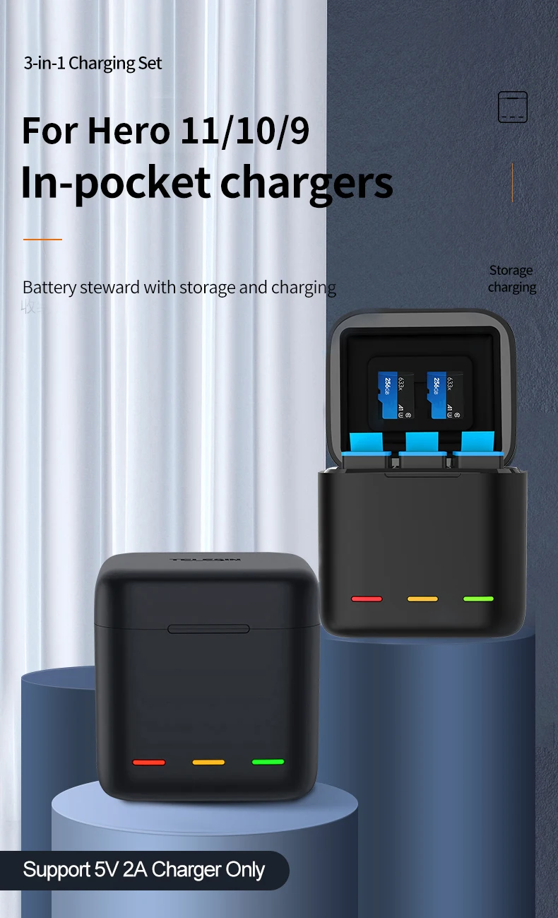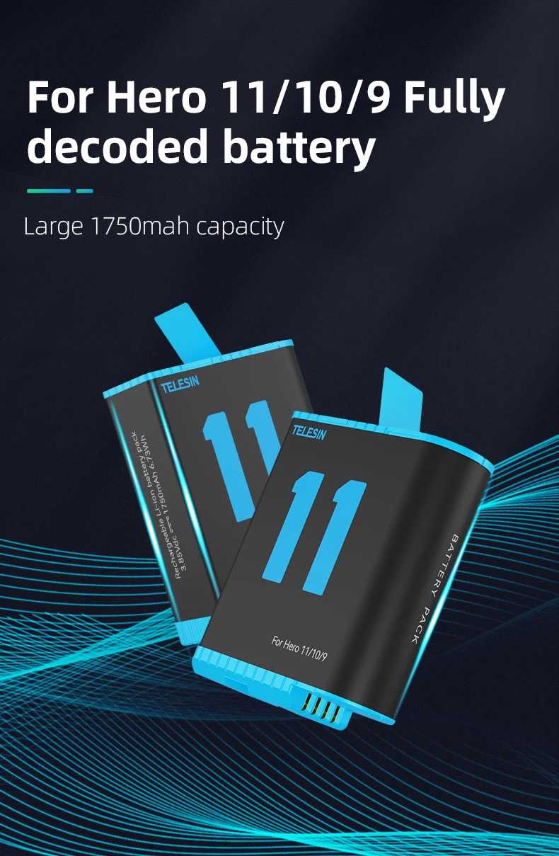 Литий-ионные аккумуляторы TELESIN 1750 мАч для GoPro Hero 9 10 11 Черное зарядное устройство для GoPro Hero 10 3 способа с хранилищем карт TF Зарядное устройство для батареи Аксессуары для камеры
