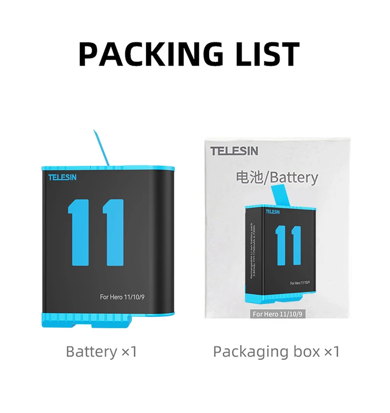Аккумулятор TELESIN 1750 мАч для GoPro 11 Hero 10