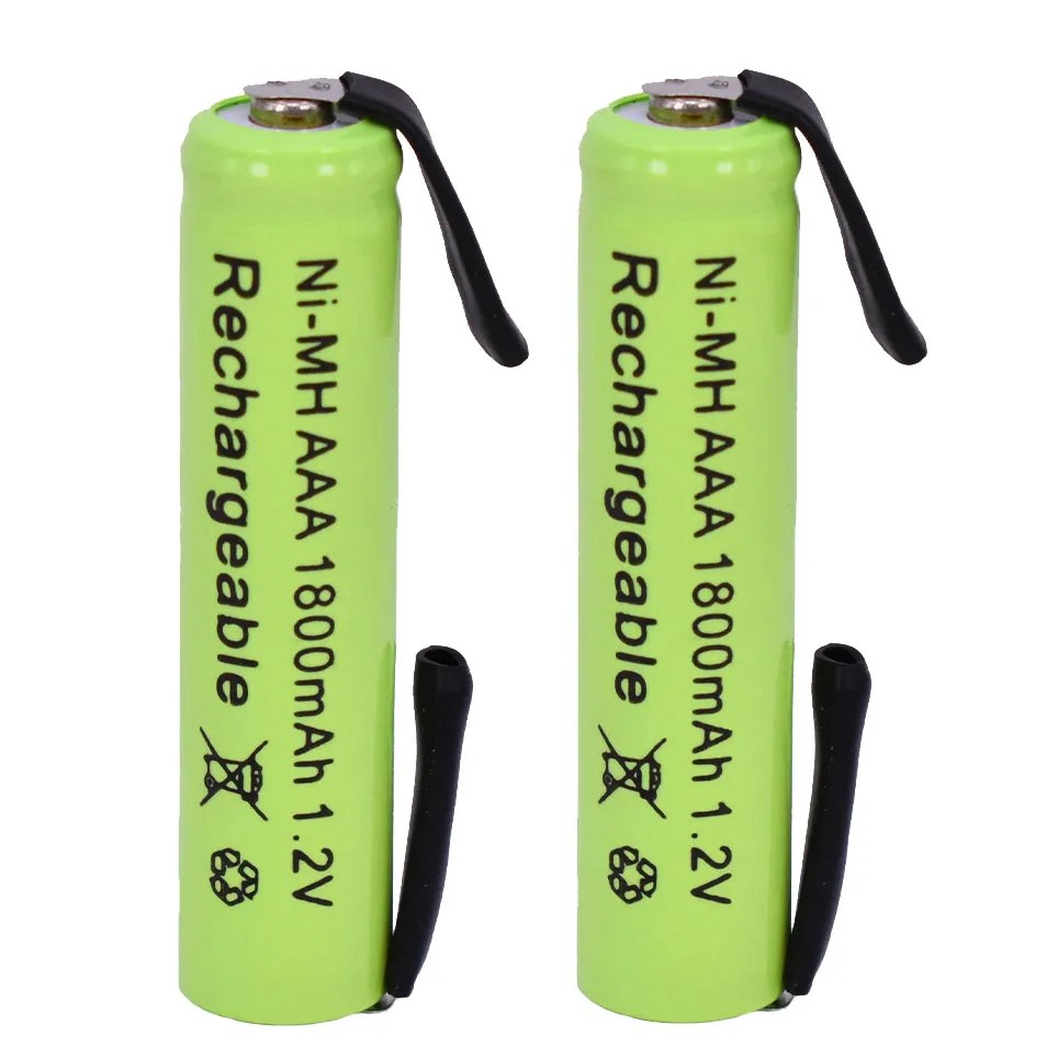 Перезаряжаемый аккумулятор Ni-Mh AAA 1,2 В, 1800 мАч, с вкладками для припоя для электробритвы Philips Braun, бритвы, зубной щетки