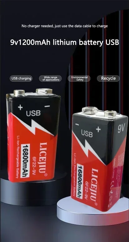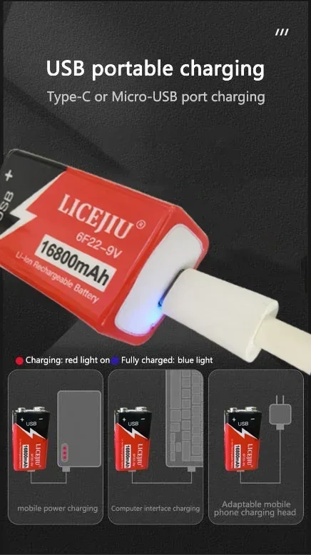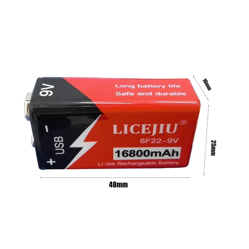 Аккумуляторная батарея 6F22, 16800 мАч, 9 В, Micro USB