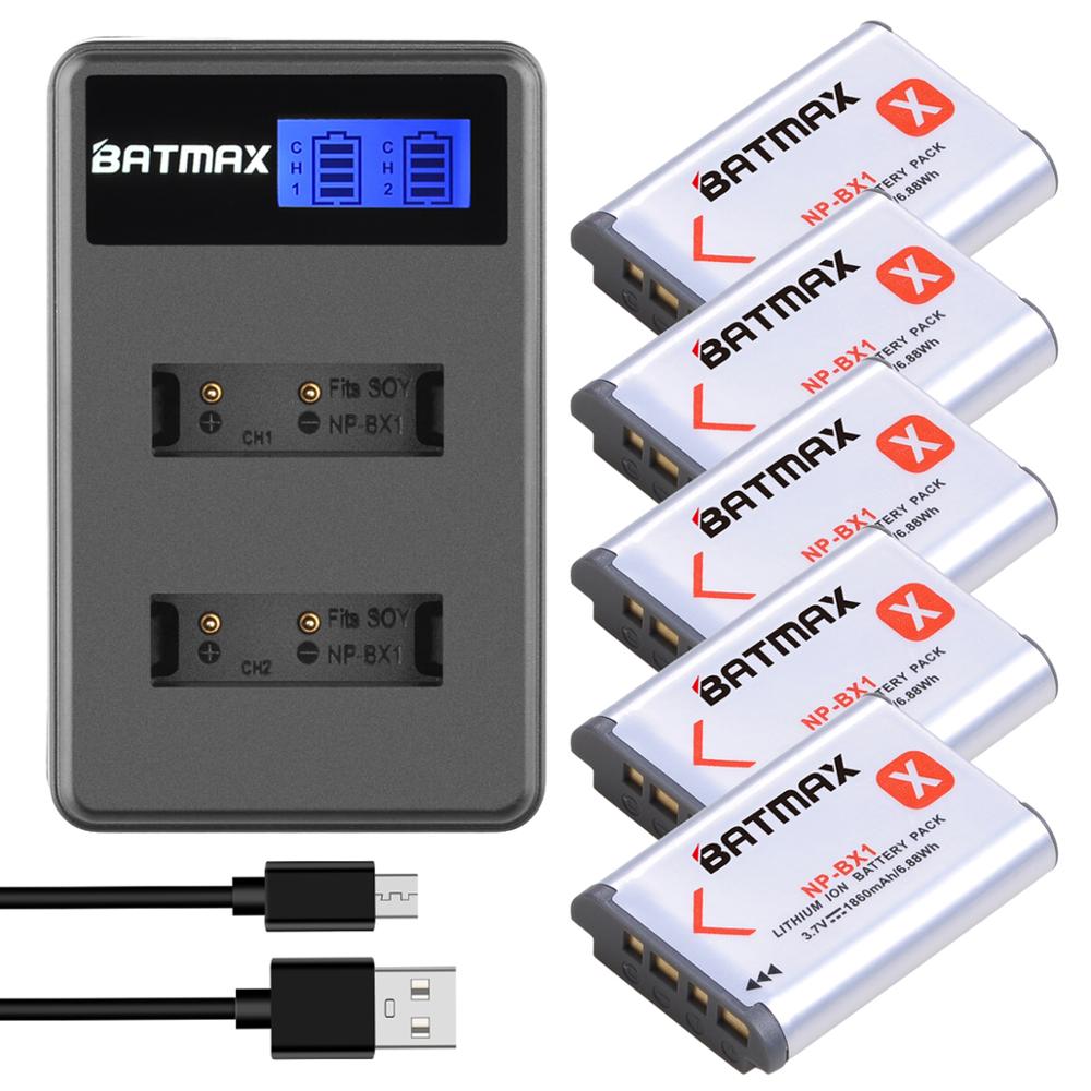 Аккумуляторная батарея Batmax NP-BX1 NP BX1 1860 мАч + двойное зарядное устройство с ЖК-дисплеем для Sony ZV-1F RX100 AS100V AS300 HX400 HX60 AS50 WX350 AS300V