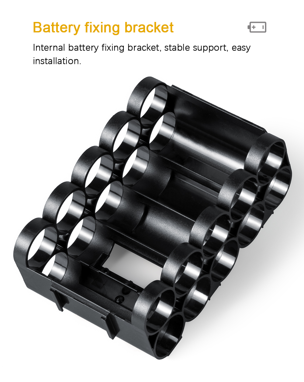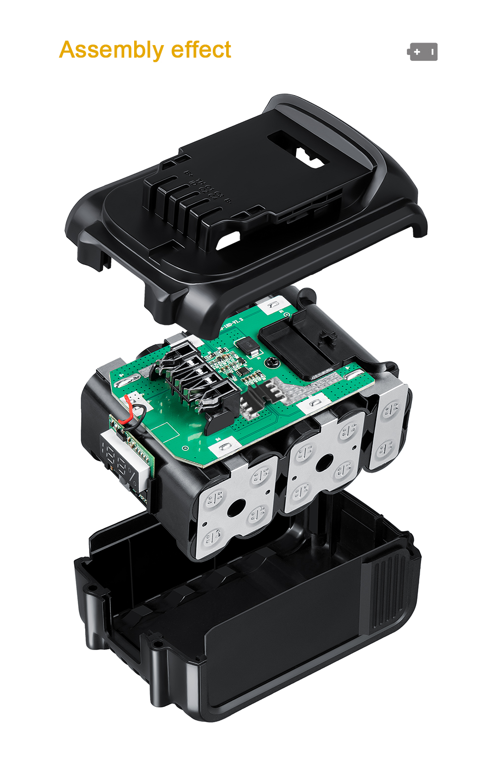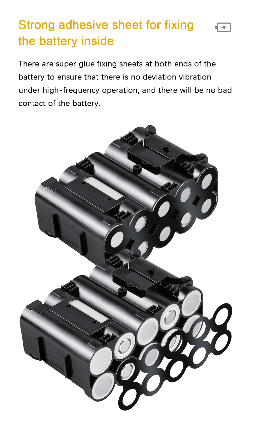 Содержит две фиксирующие полоски батареи, которые могут помочь в фиксации батареи и избежать смещения батареи и плохого контакта во время рабочей вибрации.