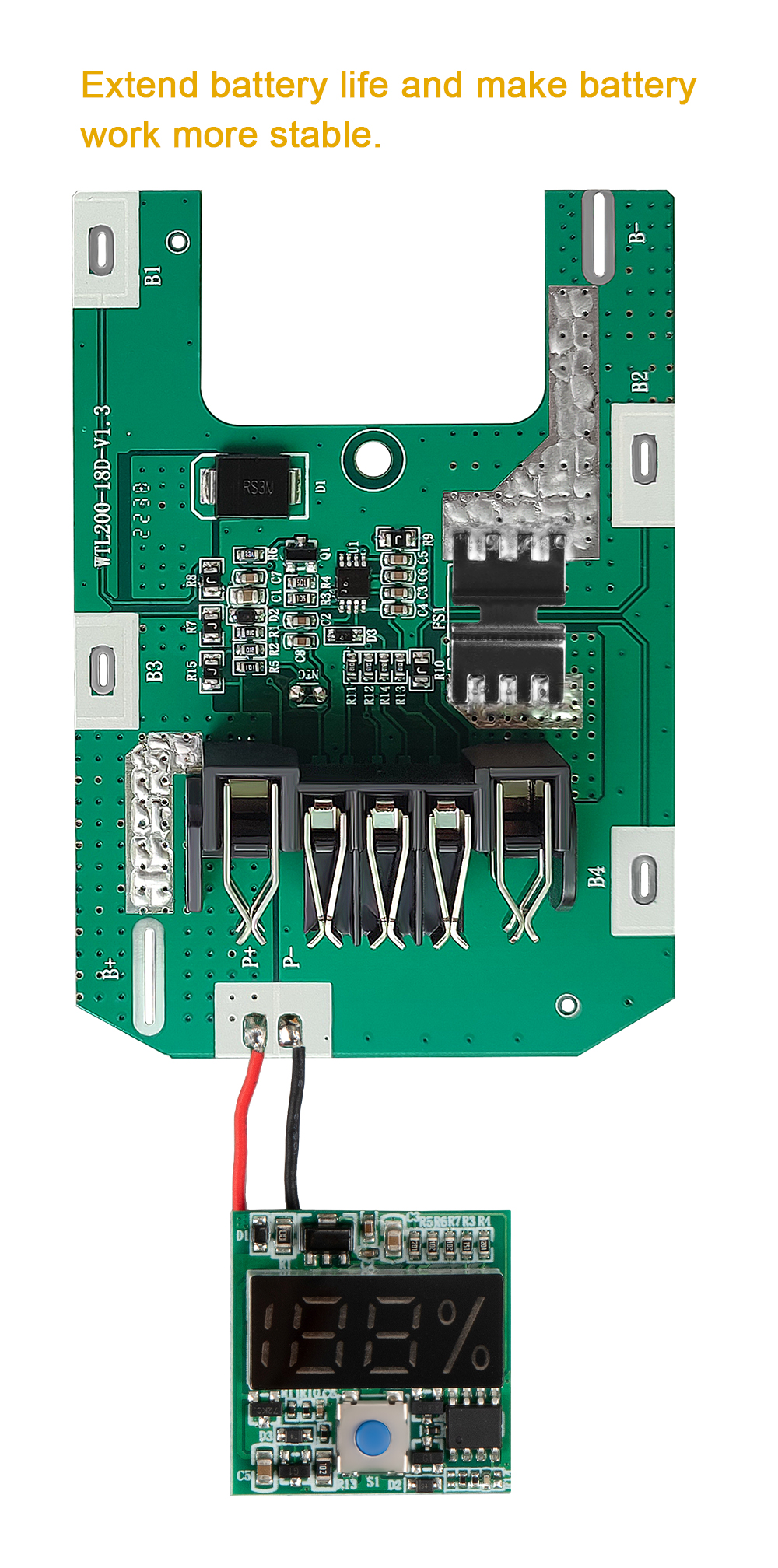 Материнская плата имеет систему BMS. Когда аккумулятор заряжается и разряжается, каждый блок батареи может быть более скоординированным и сбалансированным. Это может продлить срок службы батареи и сделать работу батареи более стабильной.
