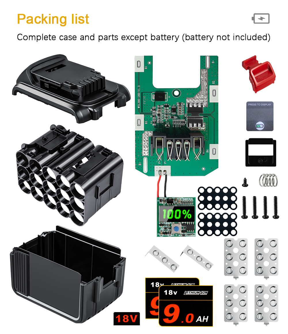 Аккумуляторная батарея DCB200, совместима с Dewalt 18 в, 20 в, 6 Ач, 9,0 Ач, корпус аксессуаров, коробка с защитой зарядки печатной платы BMS