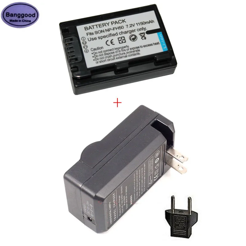 Аккумуляторная батарея для фотоаппарата 1150 мАч NP-FH50 NPFH50 + зарядное устройство переменного тока для Sony NP-FH40 FH30 FH60 FH70 FH90 FH100 Alpha DSLR A230 A330 A380 HX200