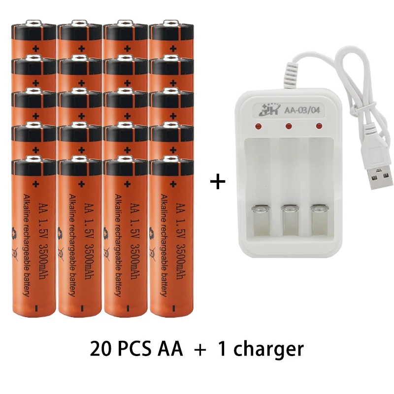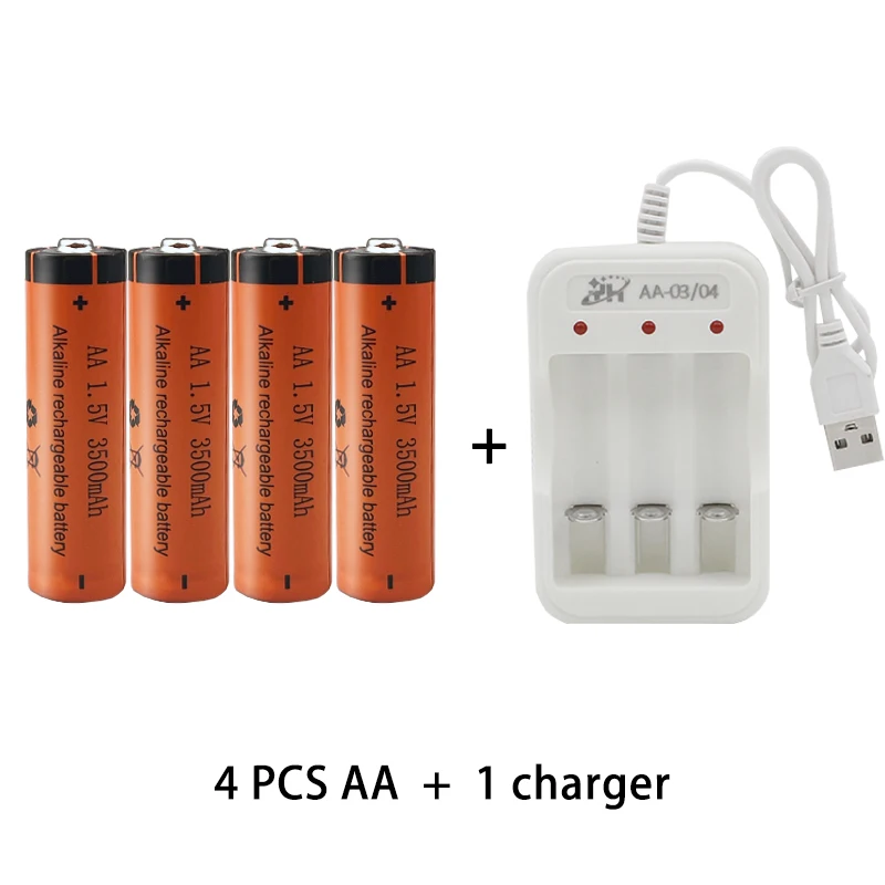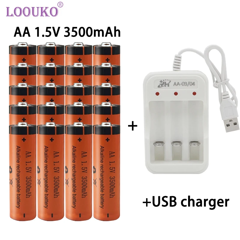 Щелочная аккумуляторная батарея LOOUKO 1,5 В AA AA3500mAh подходит для фонарей, игрушек, часов, MP3-плееров + зарядное устройство USB