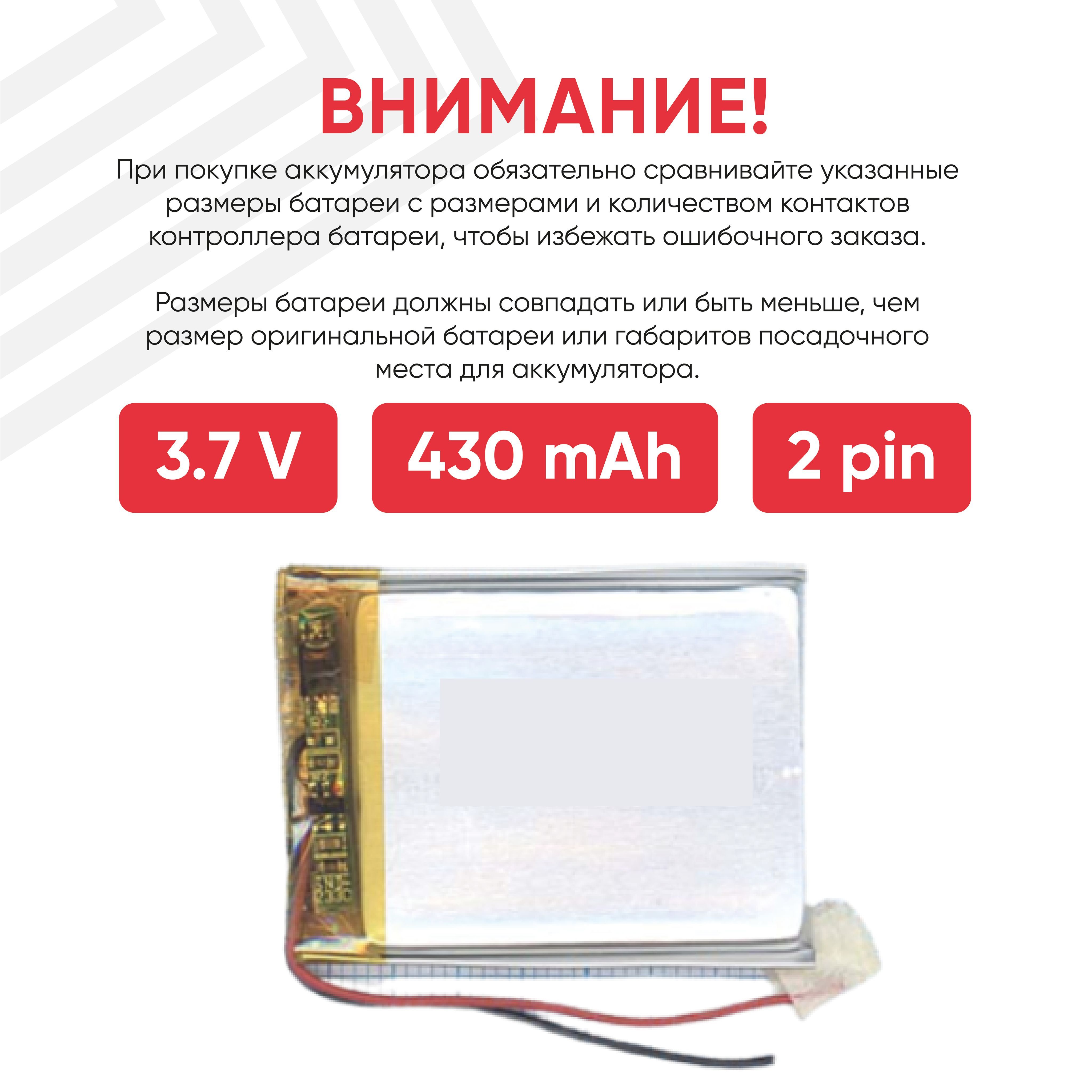 Аккумулятор видеорегистратора, планшета, игрушек, электронной книги, 4х30х40мм, 430мАч, 3.7V, Li-pol, 2pin - 1 шт.; плотная упаковка для аккумулятора 3.7V - 1 шт.