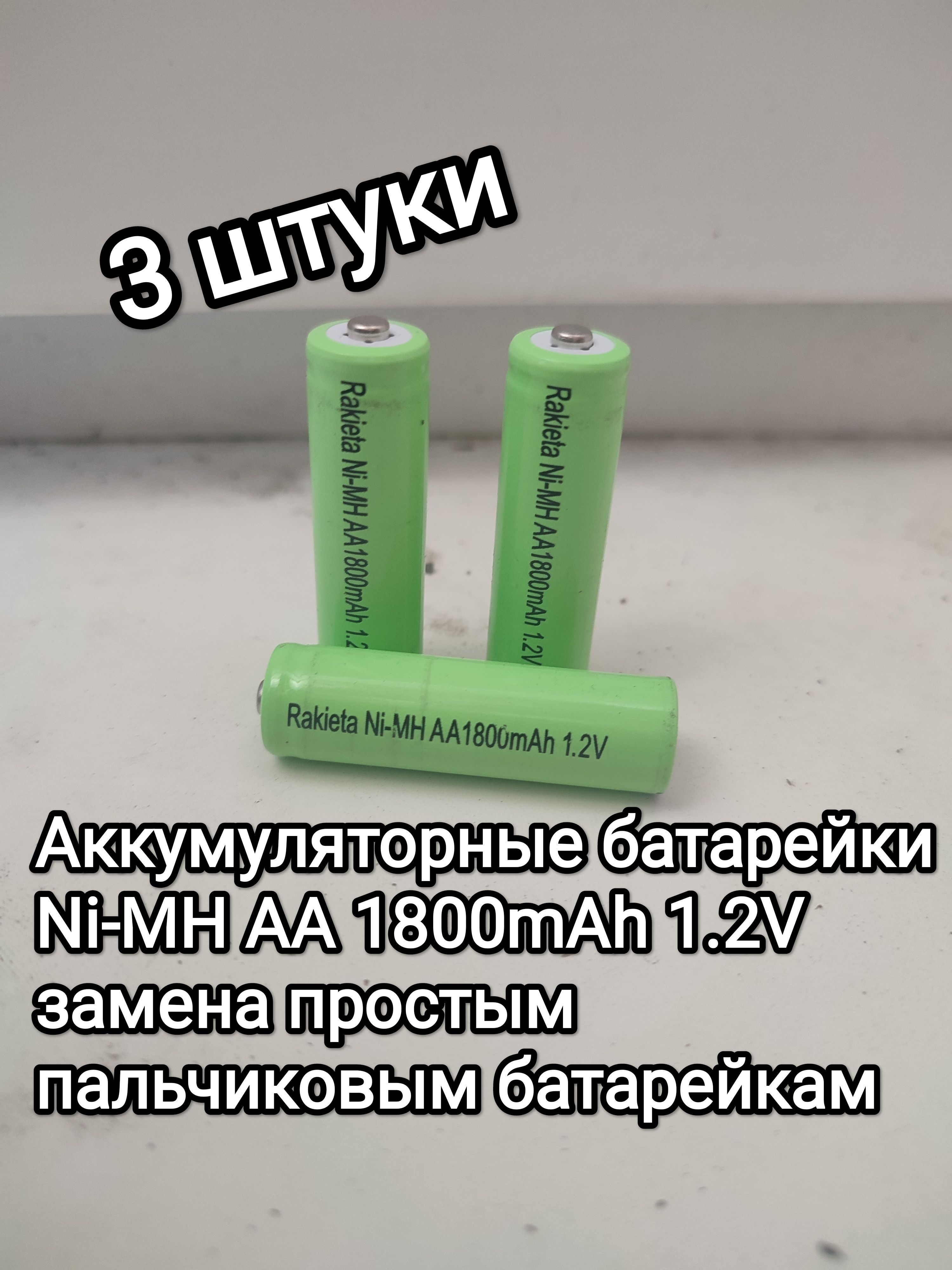 Аккумуляторная батарейка, 1,2 В, 1800 мАч, 3 шт