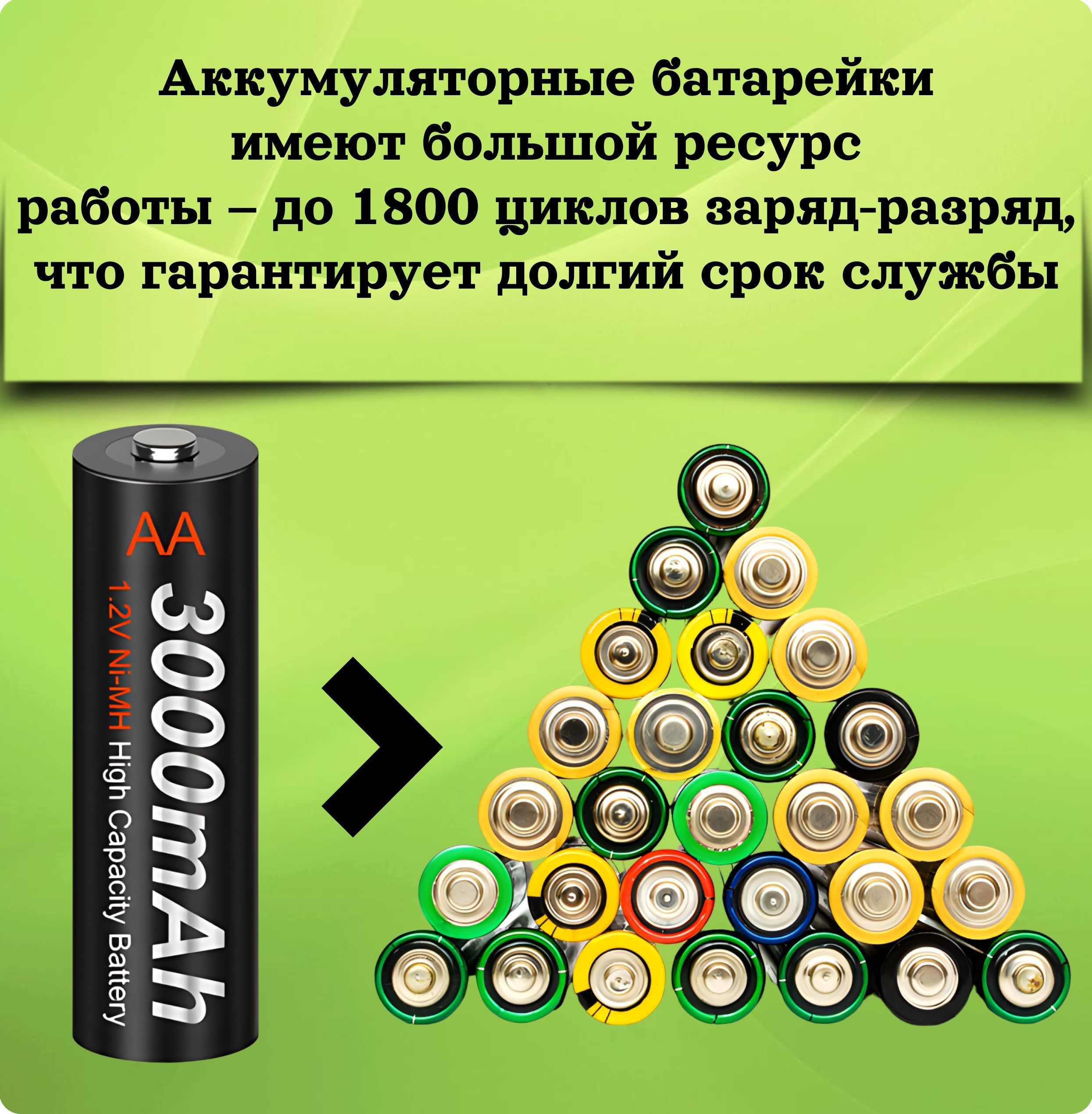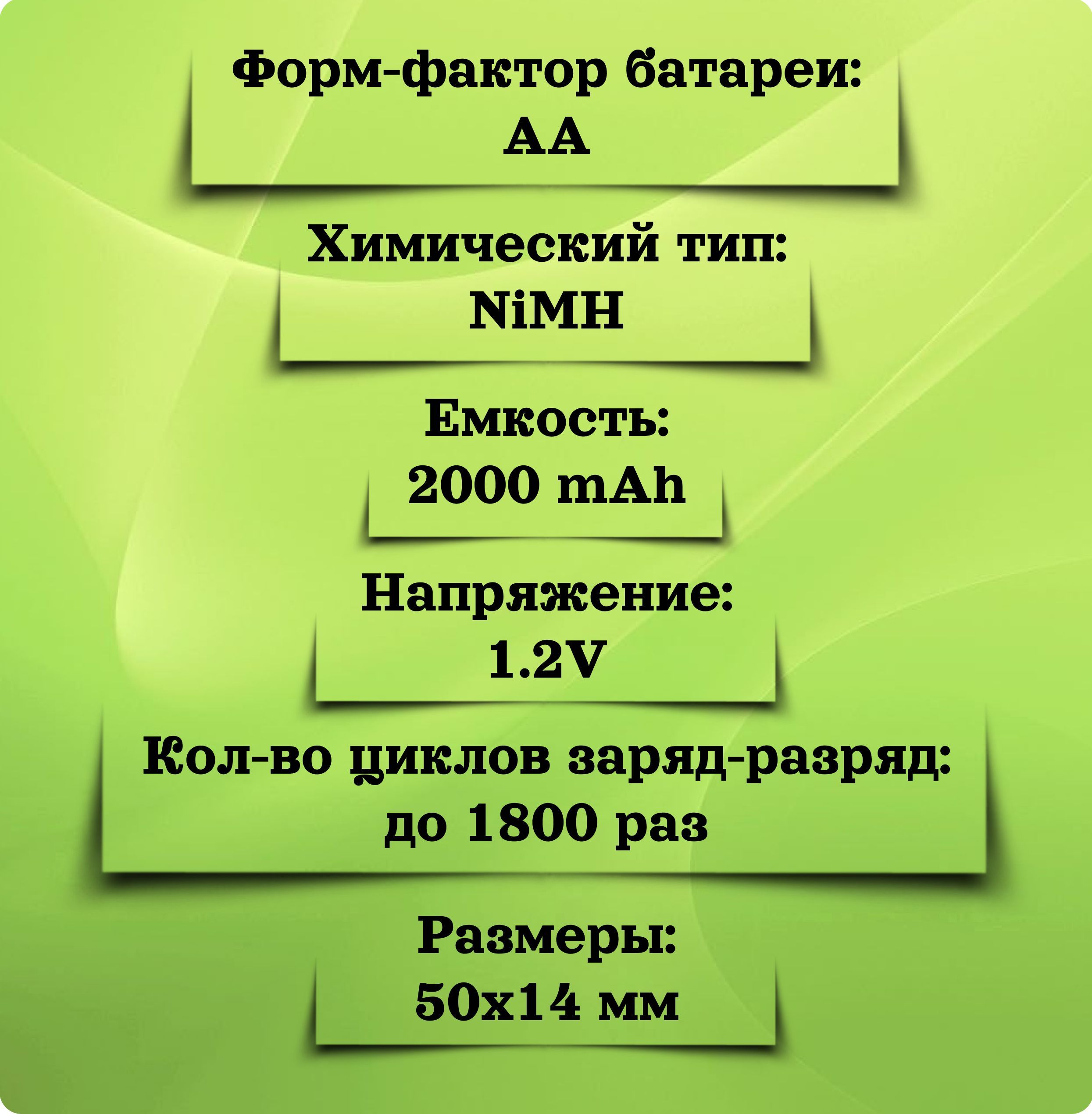 Аккумуляторная батарейка AA, 1,2 В, 2000 мАч, 4 шт