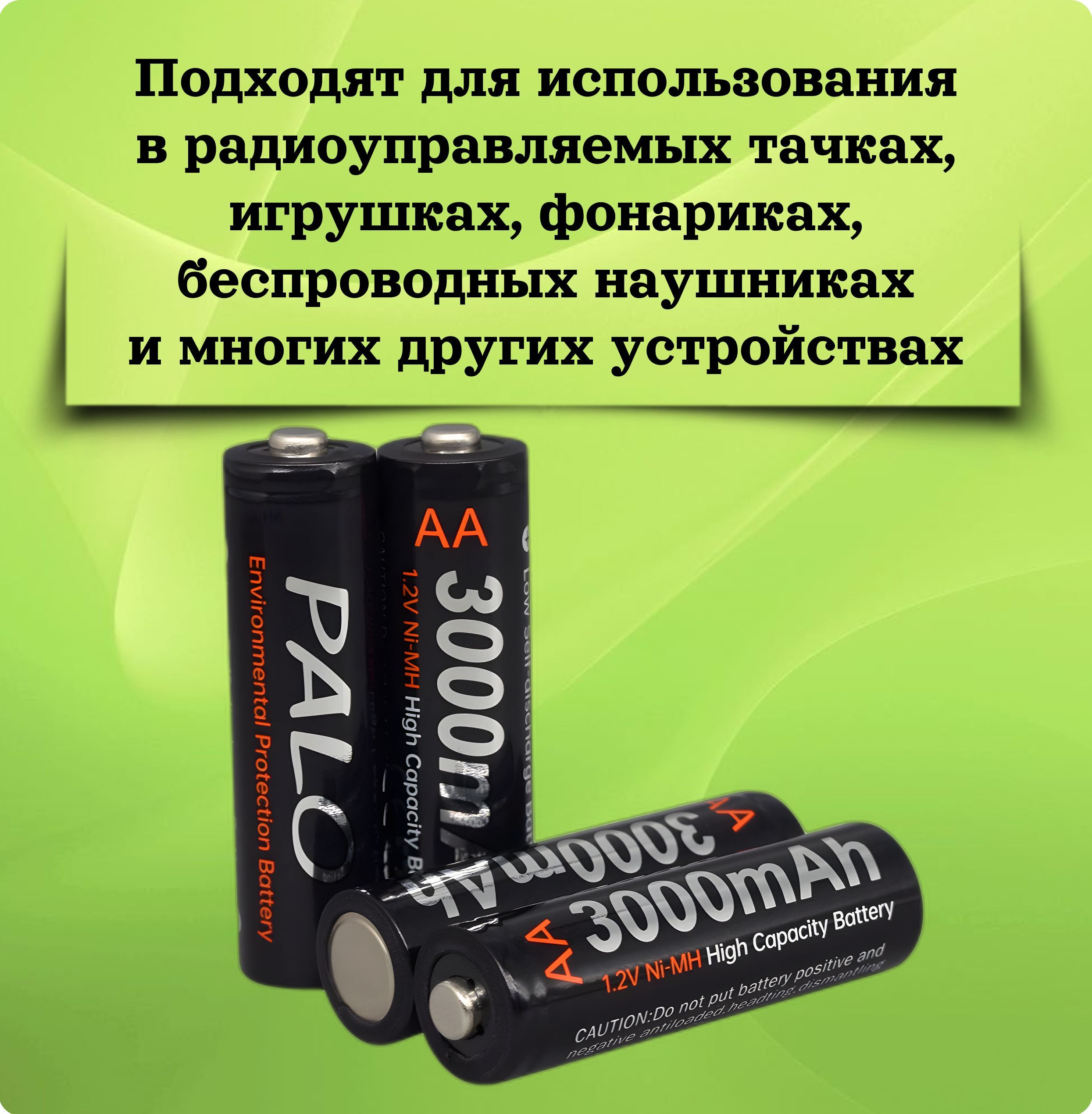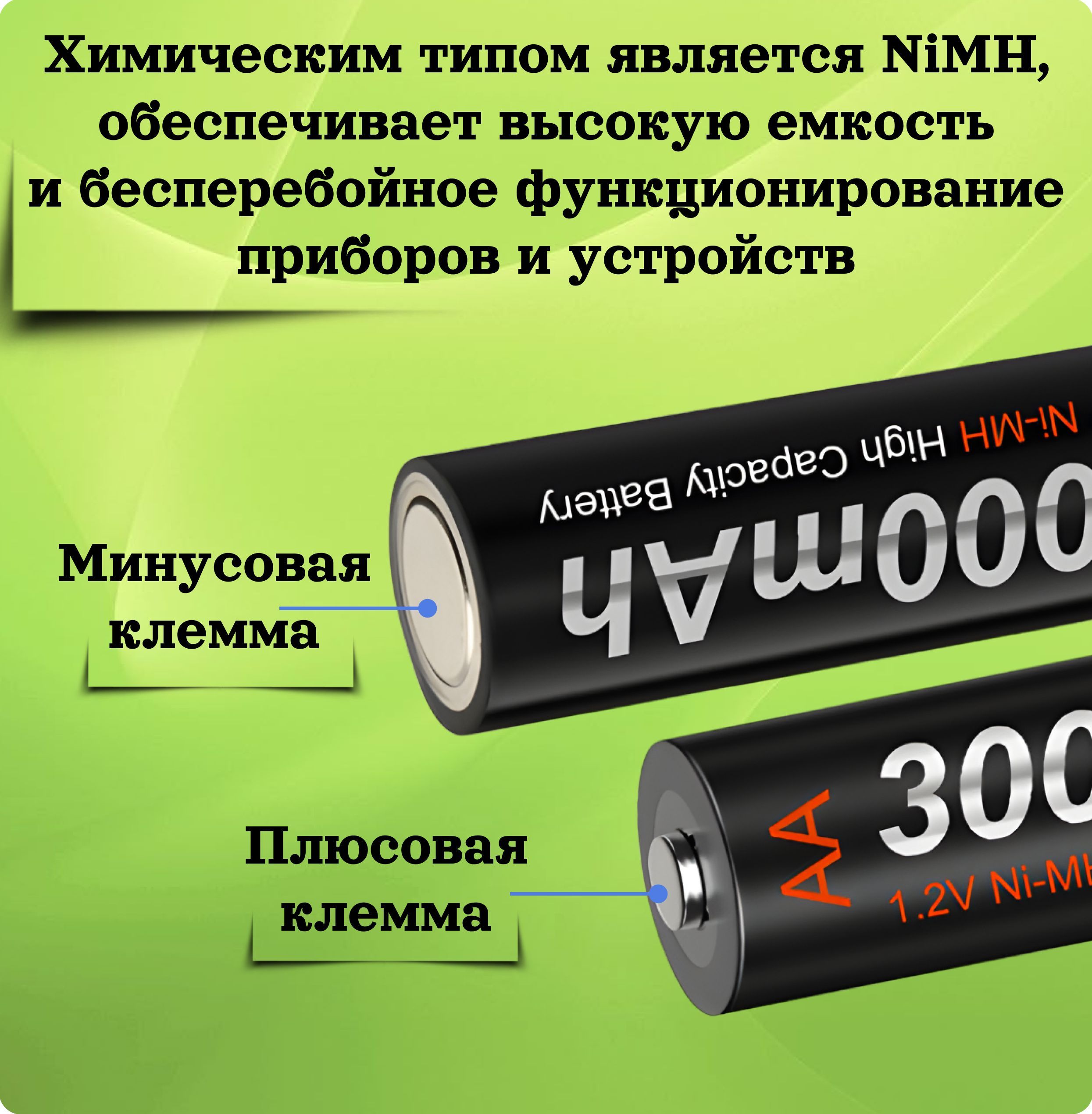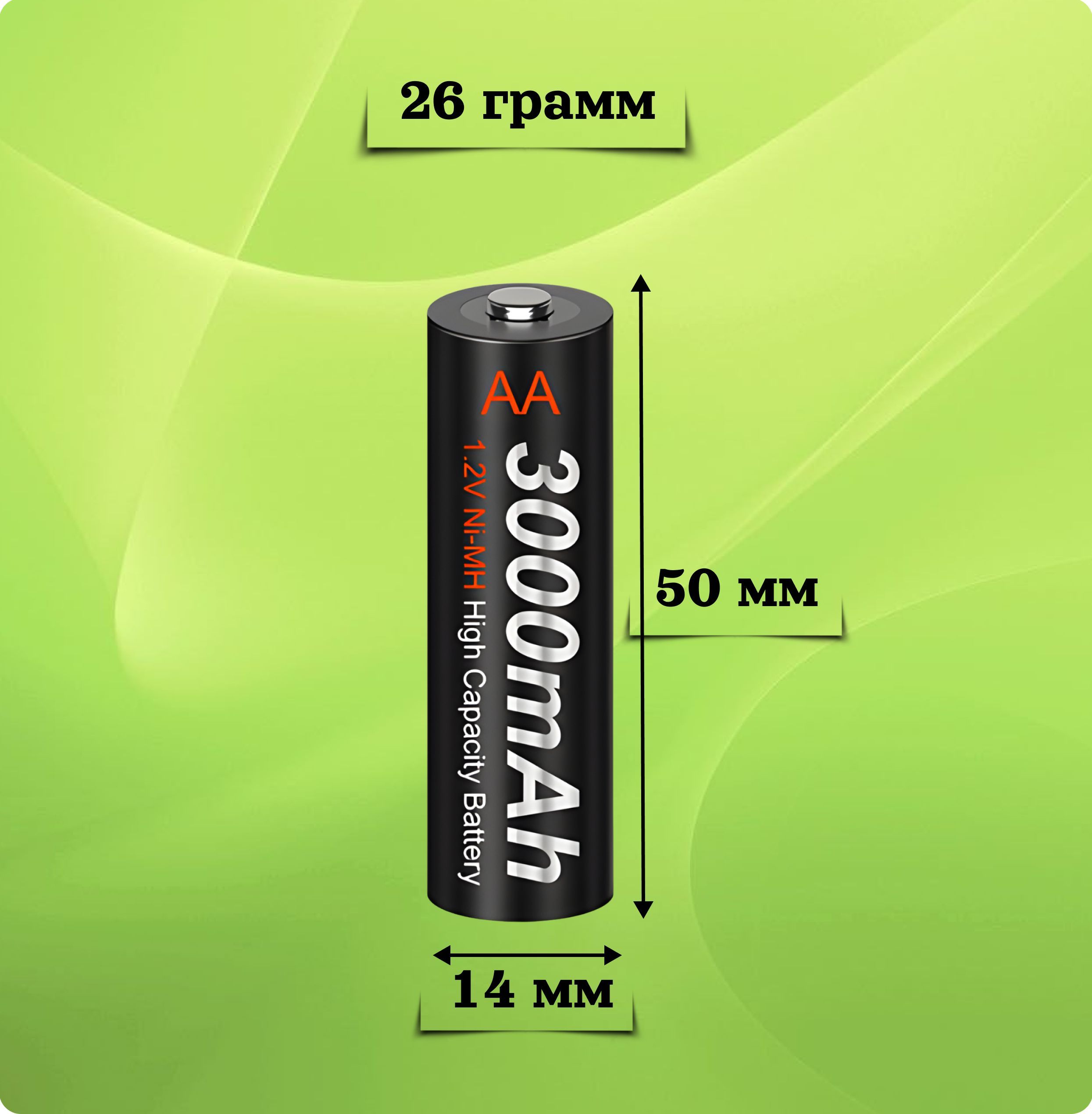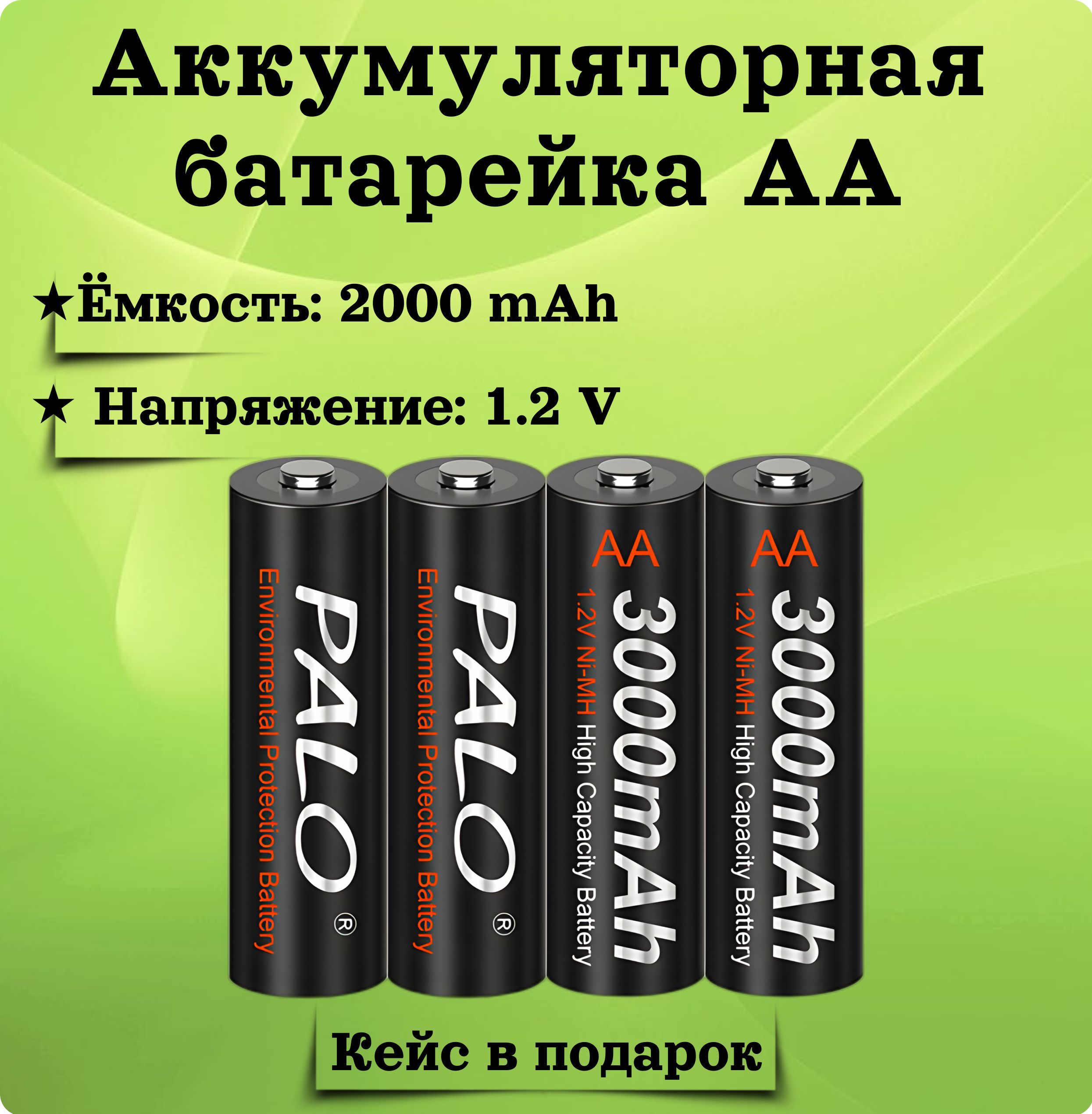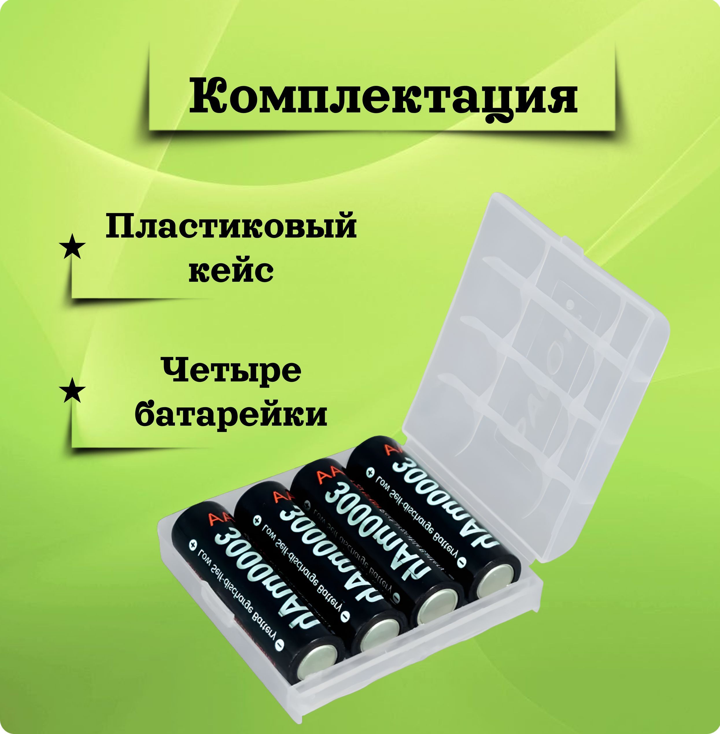 4 аккумуляторных батарейки типа АА 3000mAh 1.2V + пластиковый кейс.