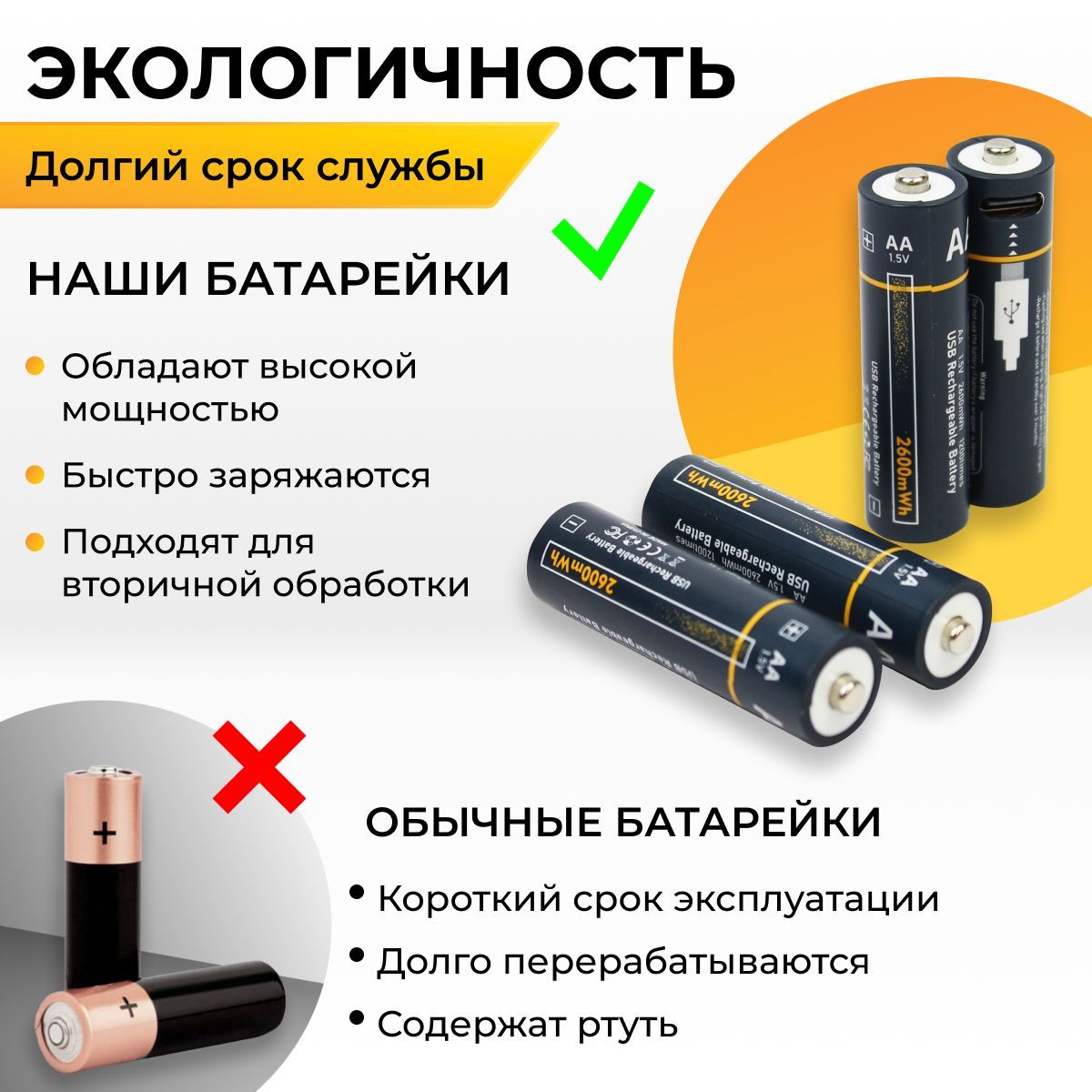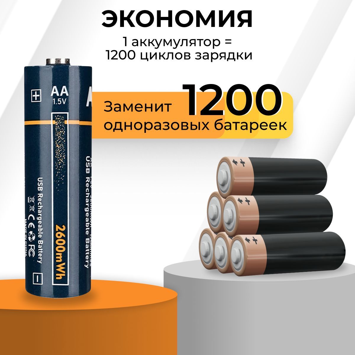 Аккумуляторная батарейка AA, 1,5 В, 2600 мАч, 4 шт
