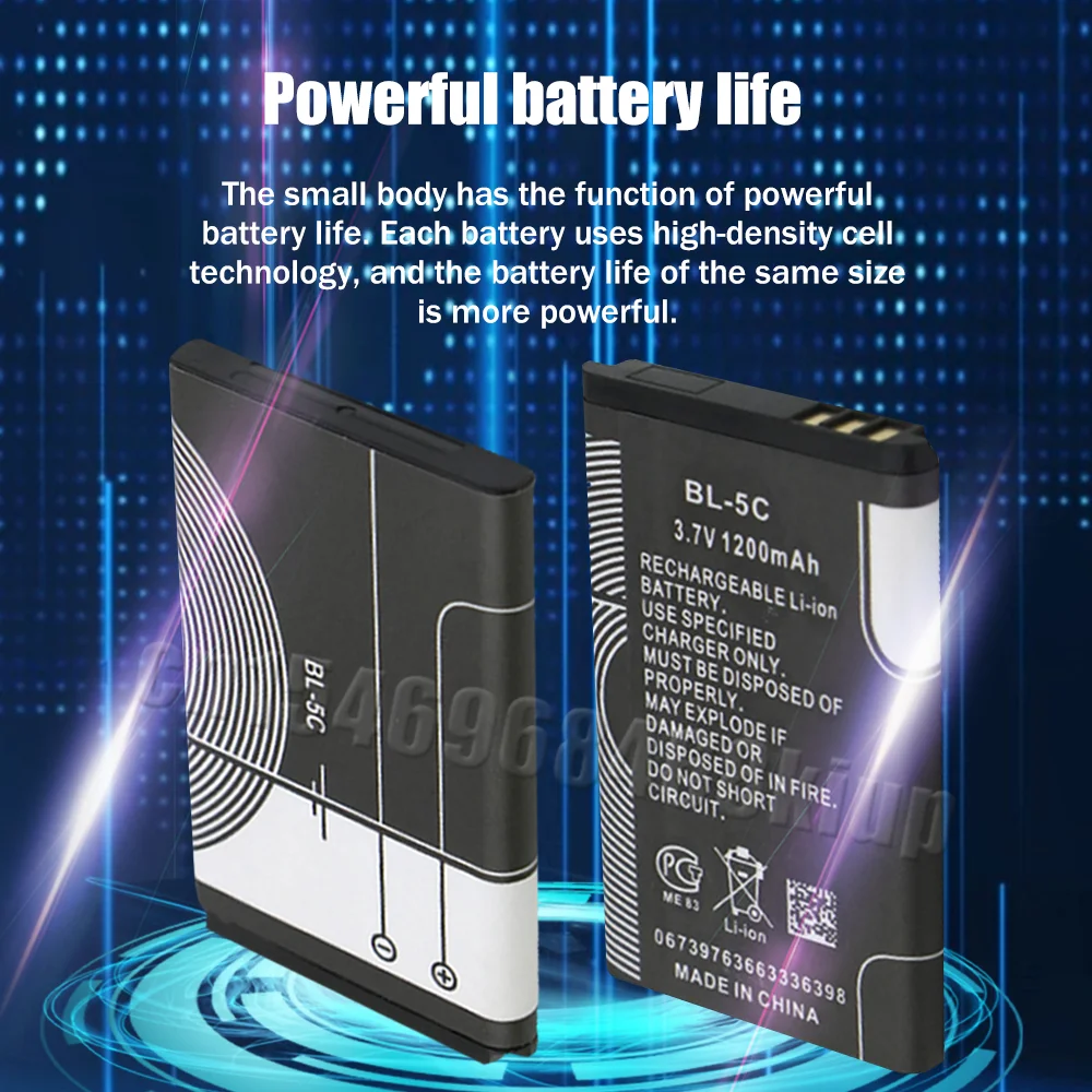 3,7 V 1200mAh BL-5C BL 5C BL5C аккумуляторная литиевая батарея для Nokia 1100 1110 1112 1200 1208 1280 1600 2300 2600 2610 2700 3100