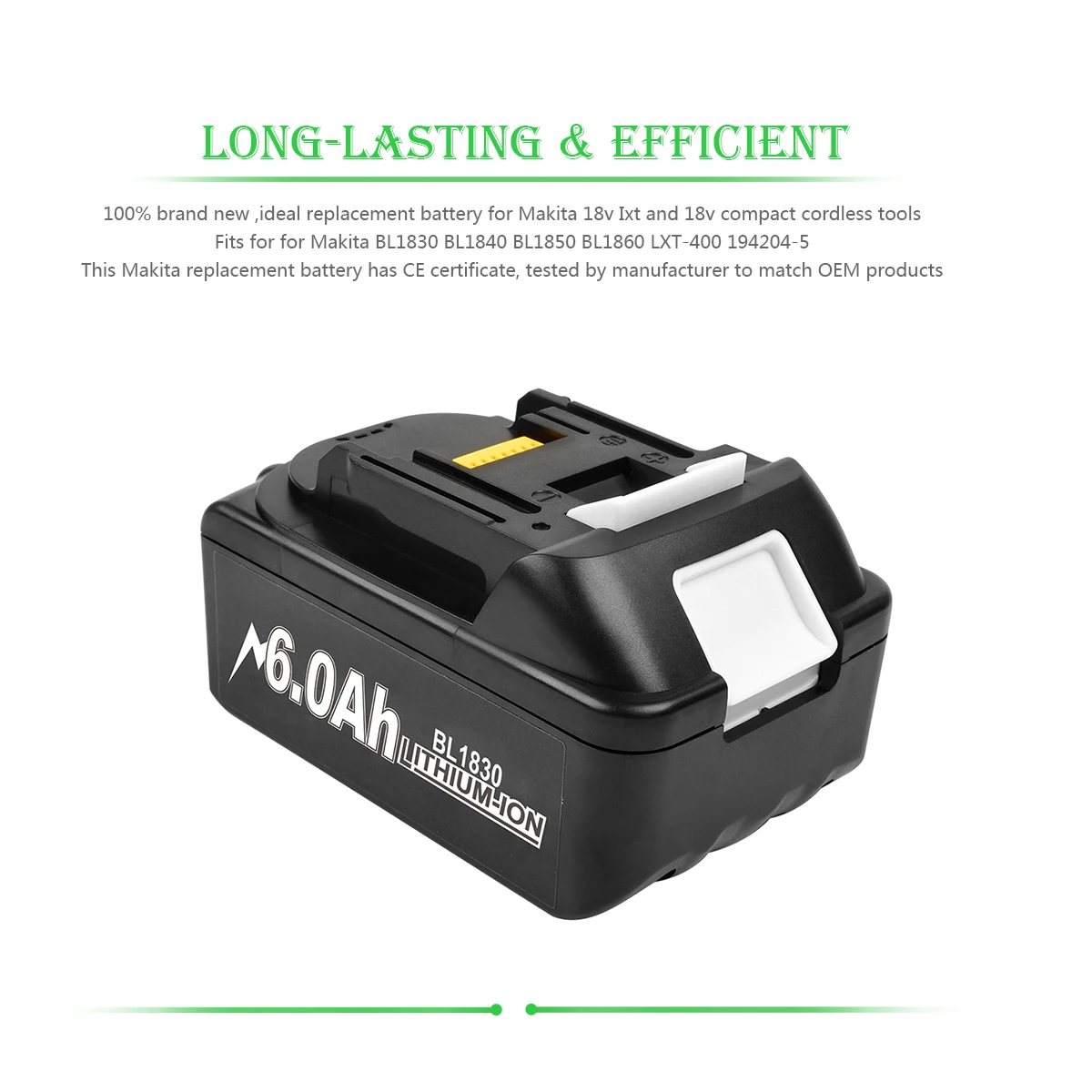 <span class="SnowProductCharacteristics_SnowProductCharacteristicsItem__titleContent__534v9">Model Number</span> For Makita BL1830 BL1815 BL1860 BL1840
