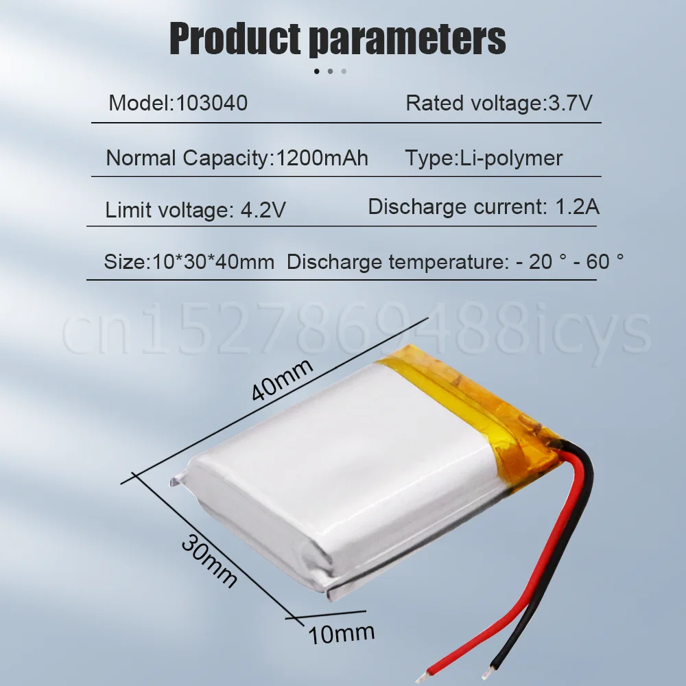 Аккумуляторная литий-полимерная батарея 103040, 3,7 в, 1200 мАч, литий-ионная батарея Lipo для MP3, MP4, DVD, GPS, камеры, массажера, Bluetooth-гарнитуры