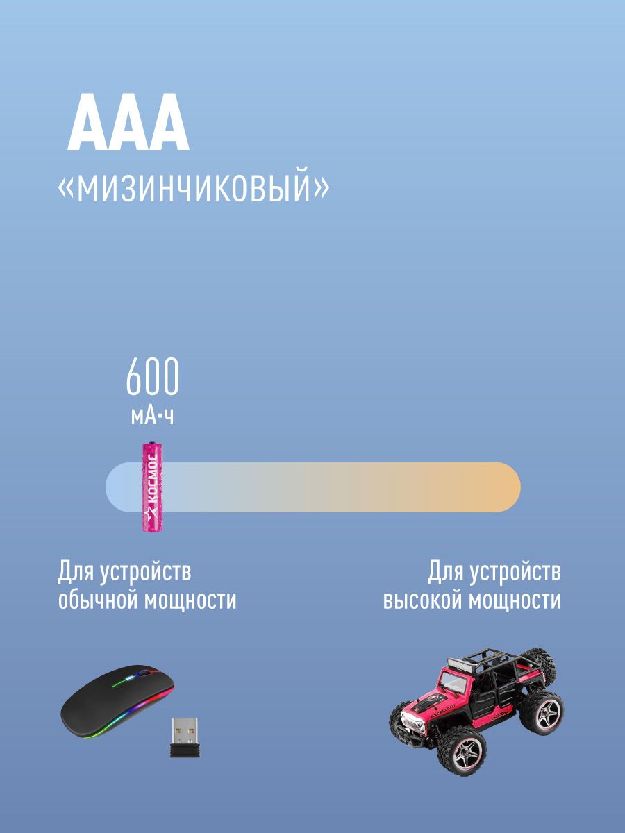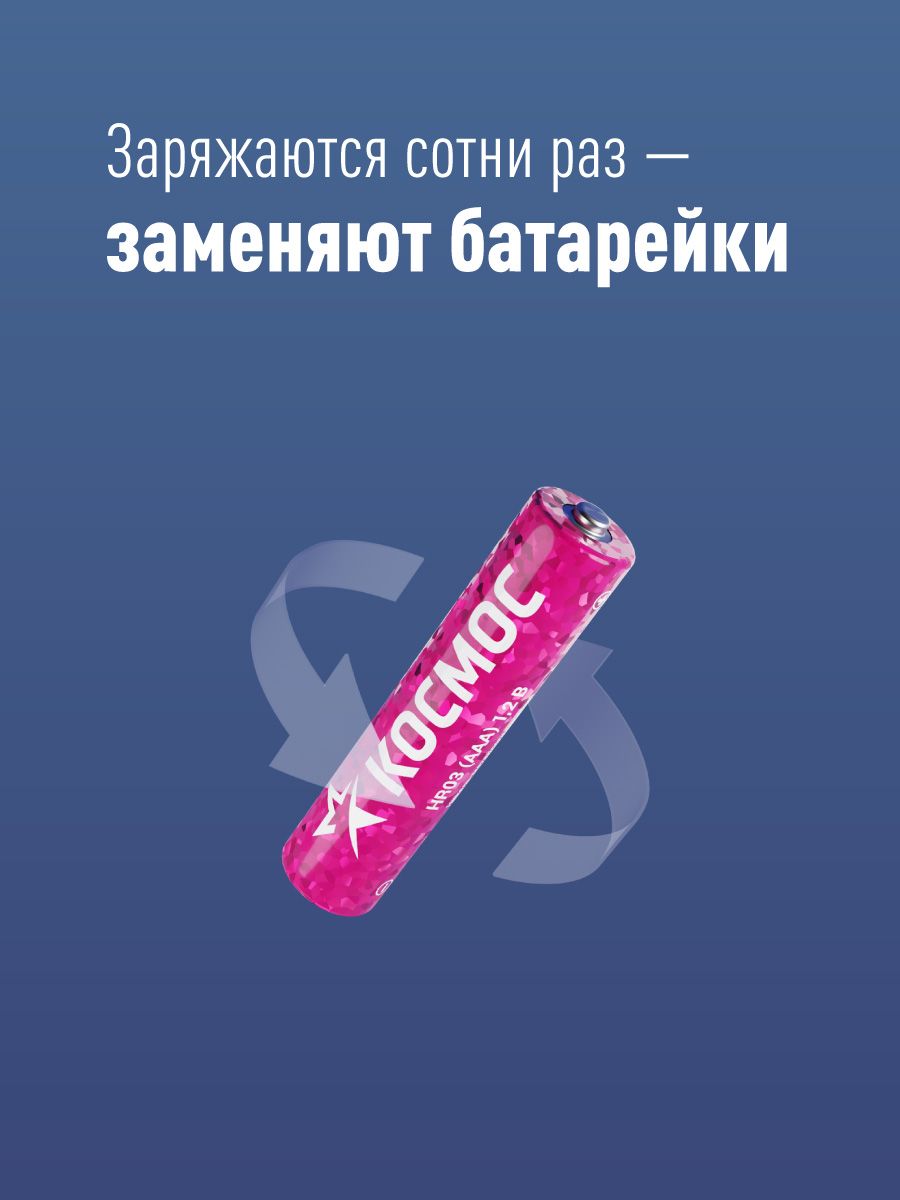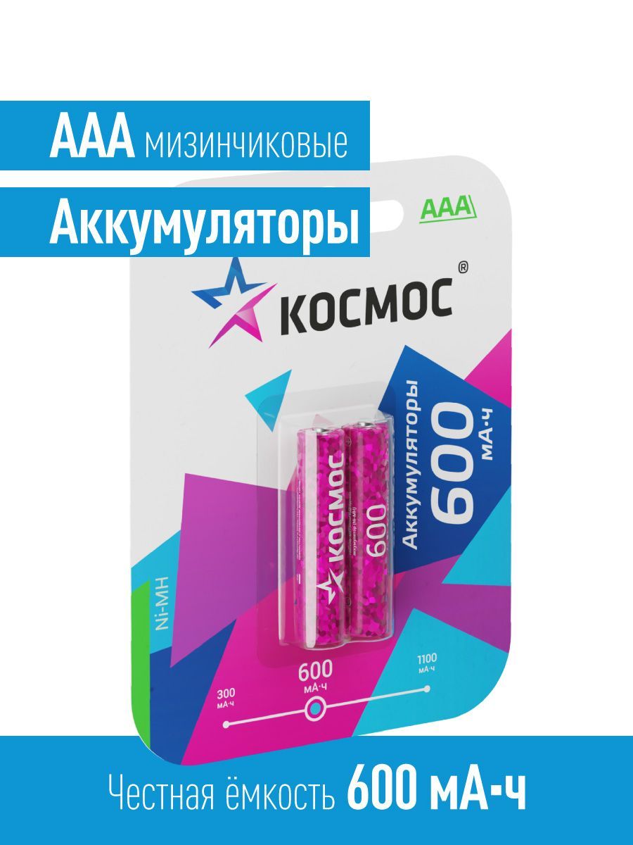 Аккумуляторные батарейки ААА КОСМОС 600 mAh, 2 шт.