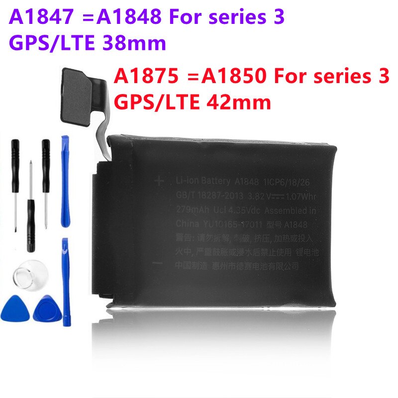 Аккумуляторы для часов A1847 A1875 A1848 A1850, для Apple Watch Series 3, GPS/LTE, 38 мм, 42 мм, с бесплатными инструментами