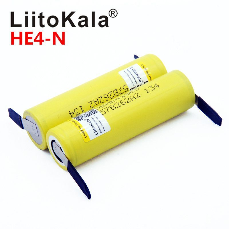 Аккумуляторы LiitoKala ICR18650HE4 3,7V 2500mAh с пластинами для шуруповертов 2шт.