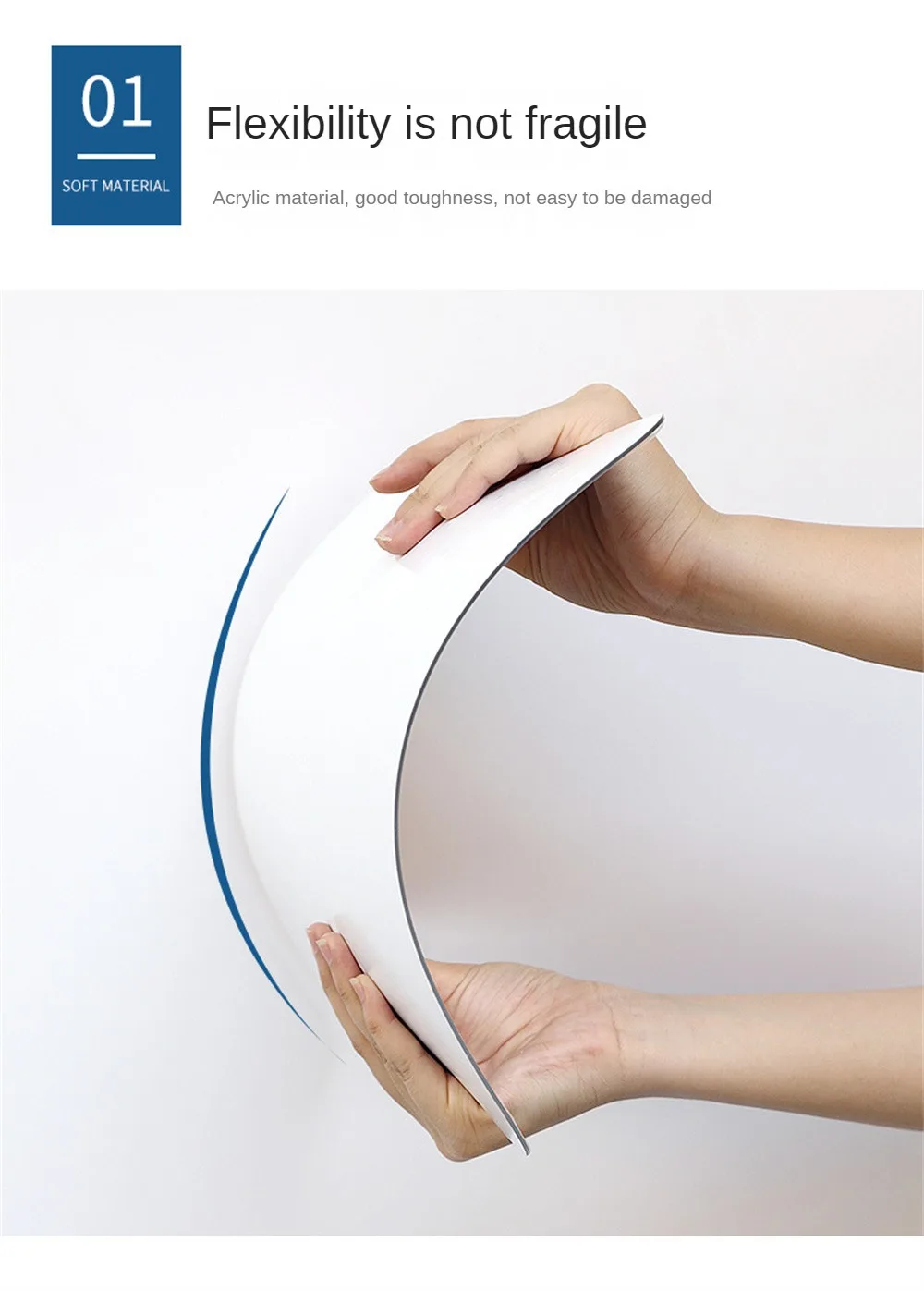 1. акриловый материал, не боится падения зеркала. Взрывозащищенность: нижний слой защищен взрывозащищенной пленкой, которая не разбрызгивается мусором при поломке; гибкий: акриловое новое сырье, хорошая прочность, нелегко повредить, мягкая текстура, прочный