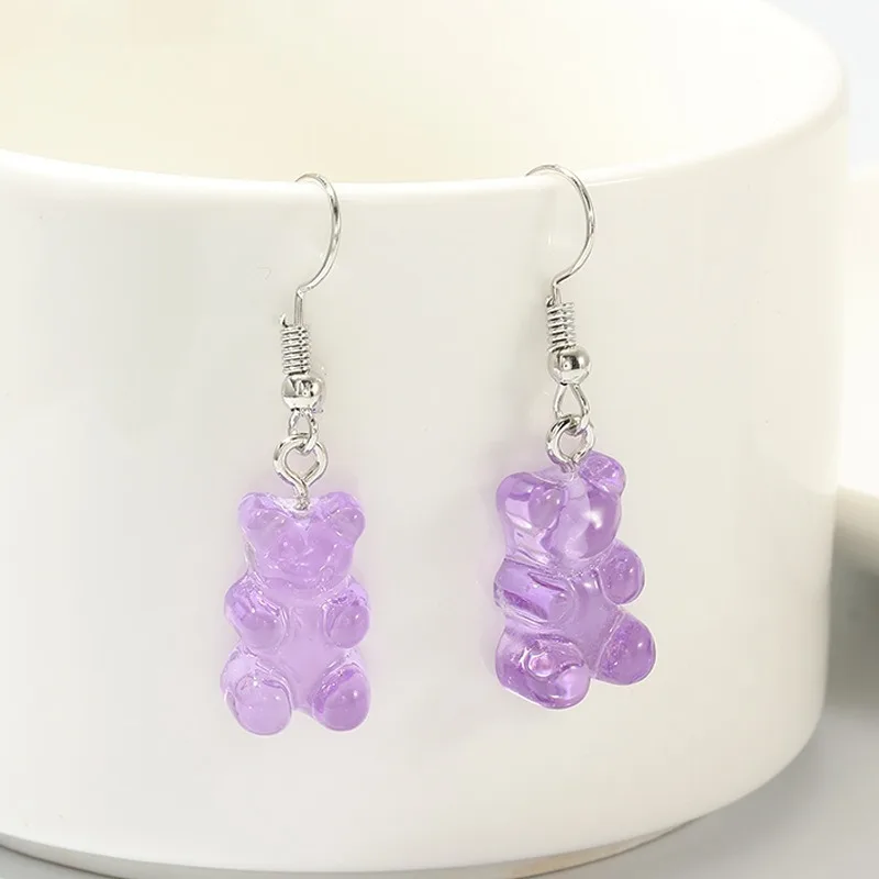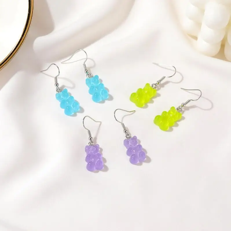 Акриловые серьги-подвески в виде медведя для женщин, простые прозрачные желеобразные разноцветные полимерные серьги в виде животных, модные креативные аксессуары