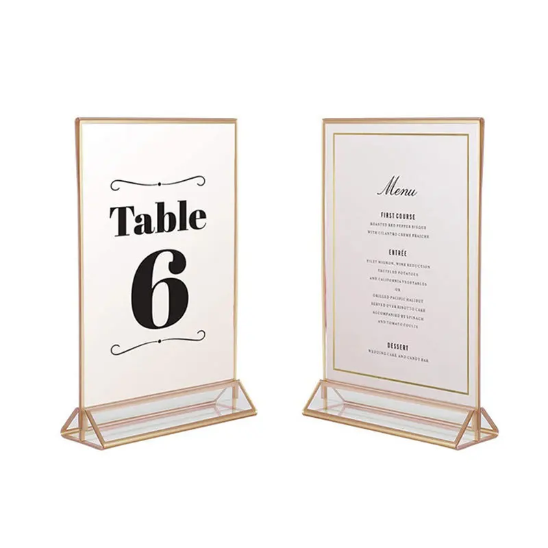 Акриловый держатель для этикеток с золотой границей, настольный логотип для женских, женских, свадебных и обеденных столов, меню, дисплейная доска