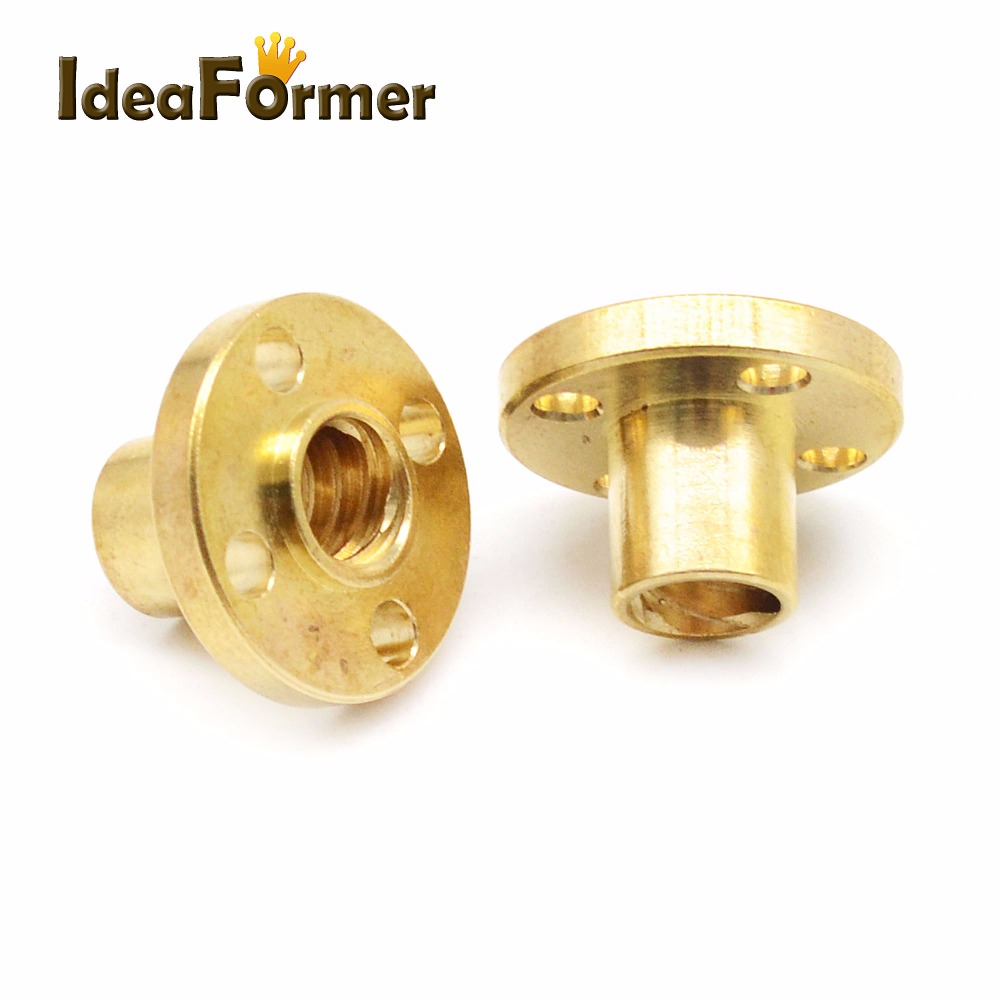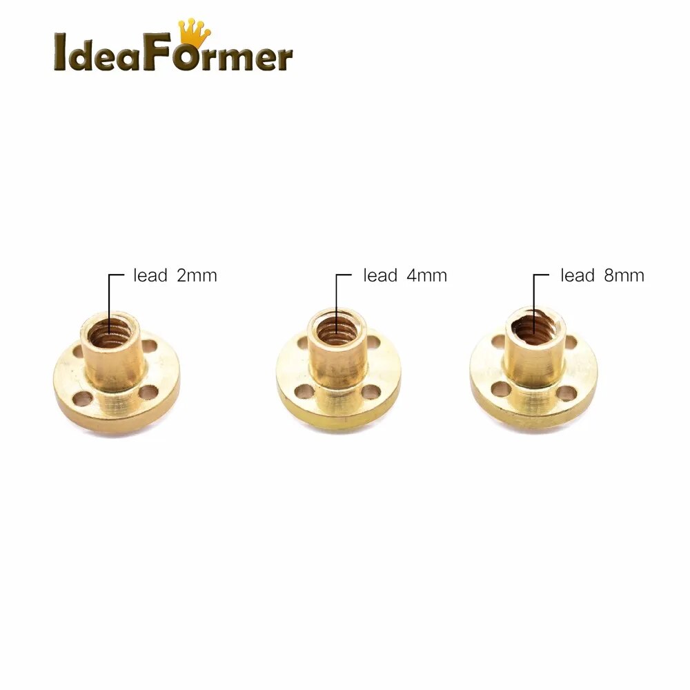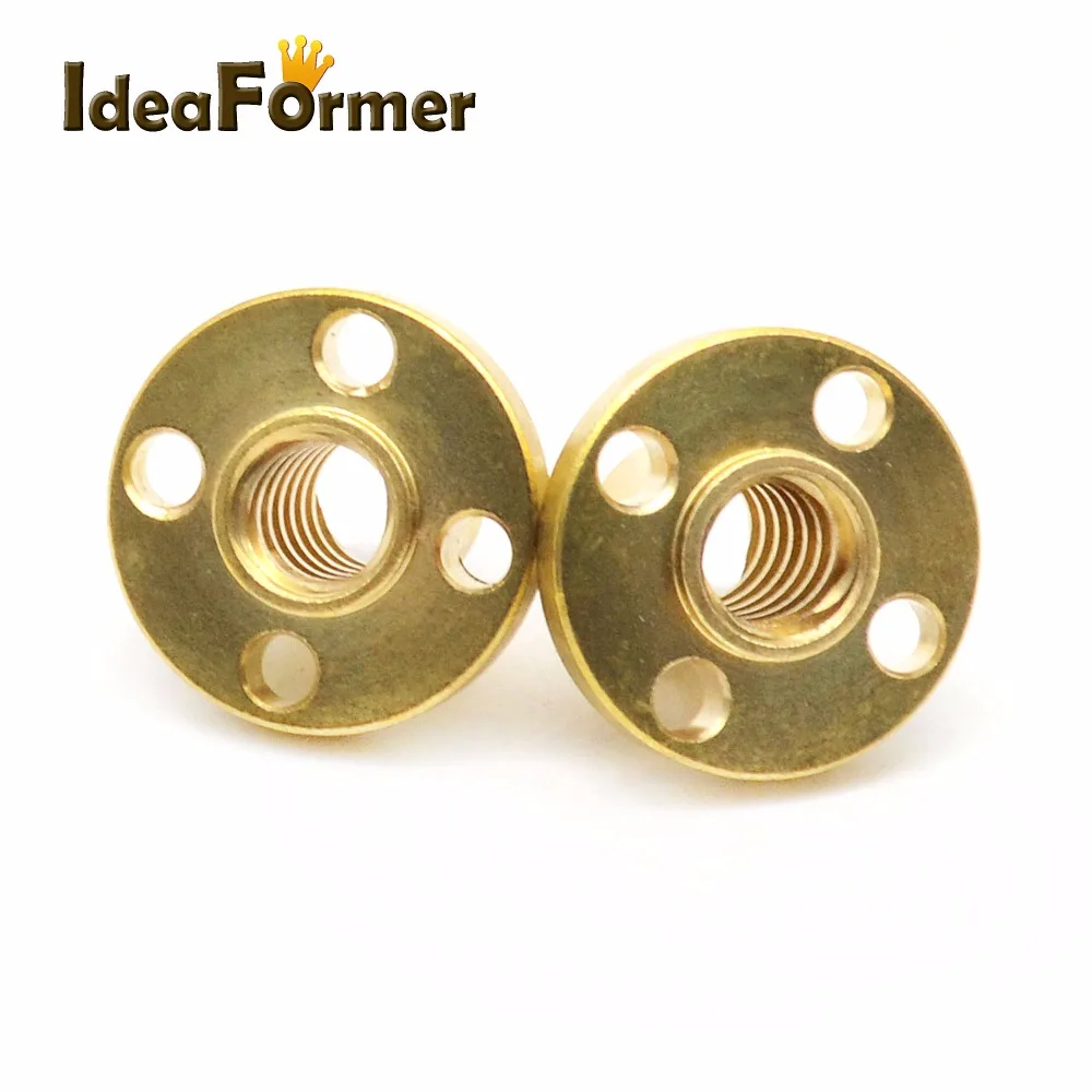 Аксессуары для 3D-принтера, Медная гайка, t2 мм, T4 мм, t8 мм, свинцовый винт, рельсовый винт шагового двигателя, фланцевая Латунная гайка