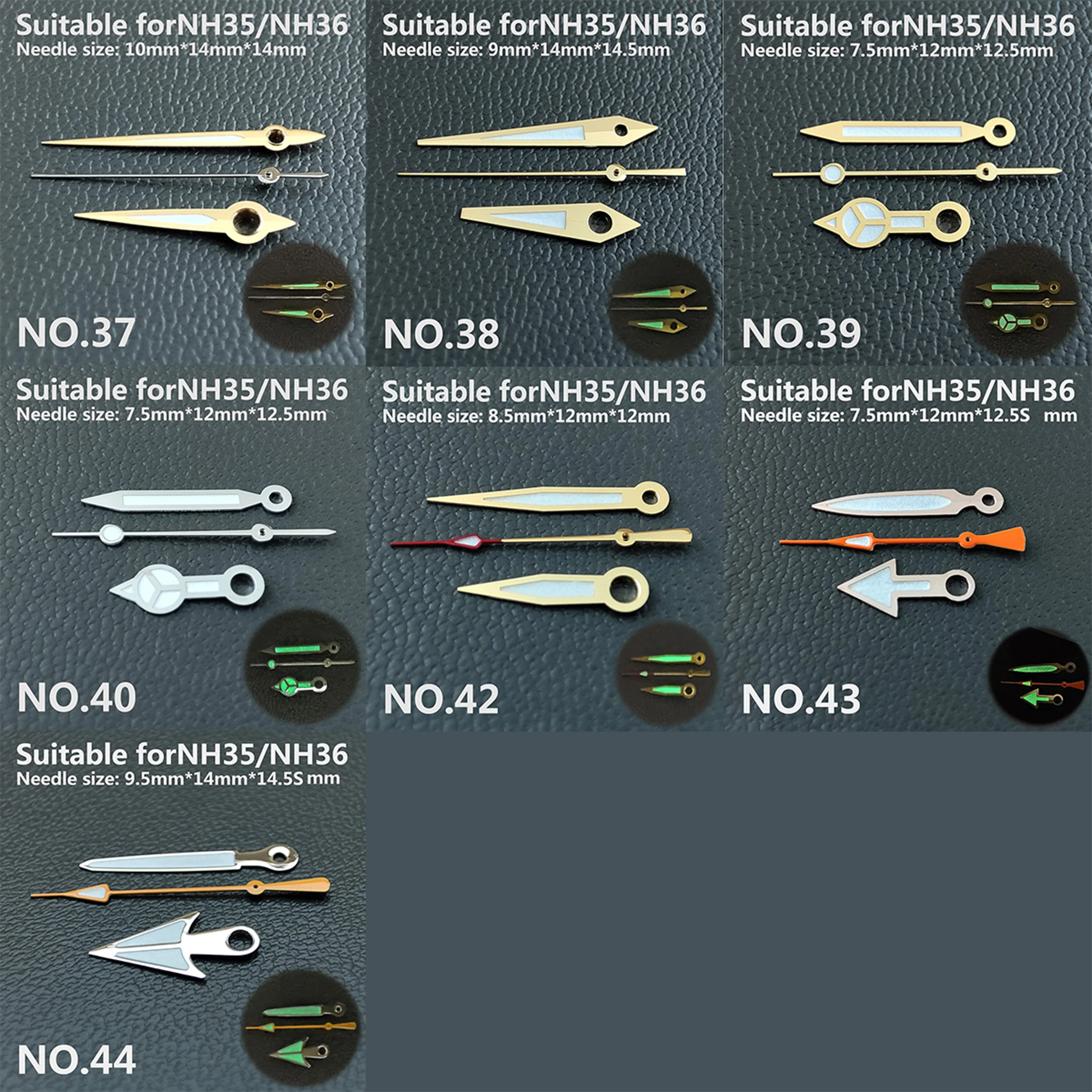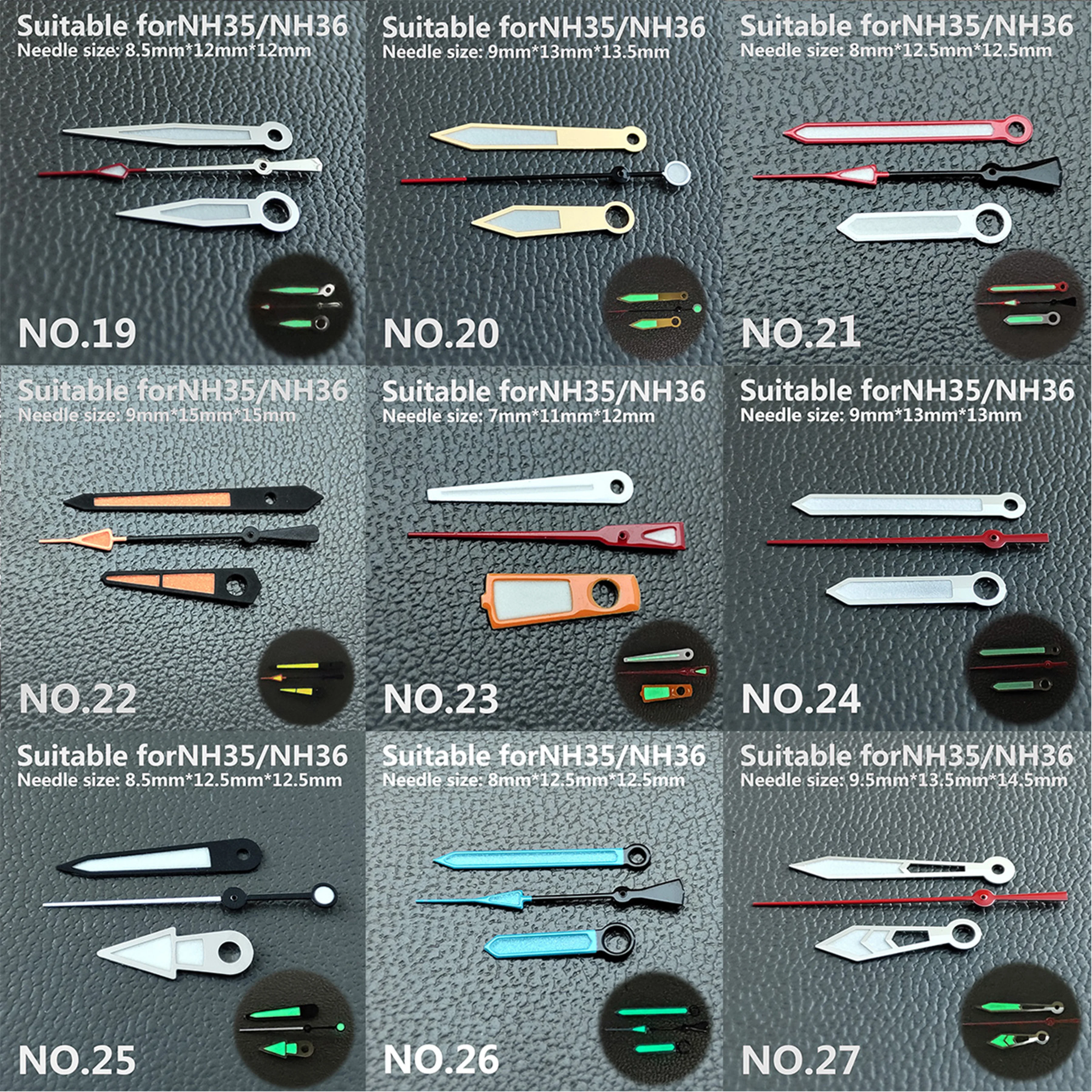 Аксессуары для часов, стрелки для часов NH35, стрелки серебряного, черного цвета, зеленый свет, подходит для движения NH35, NH36 NO.31.1