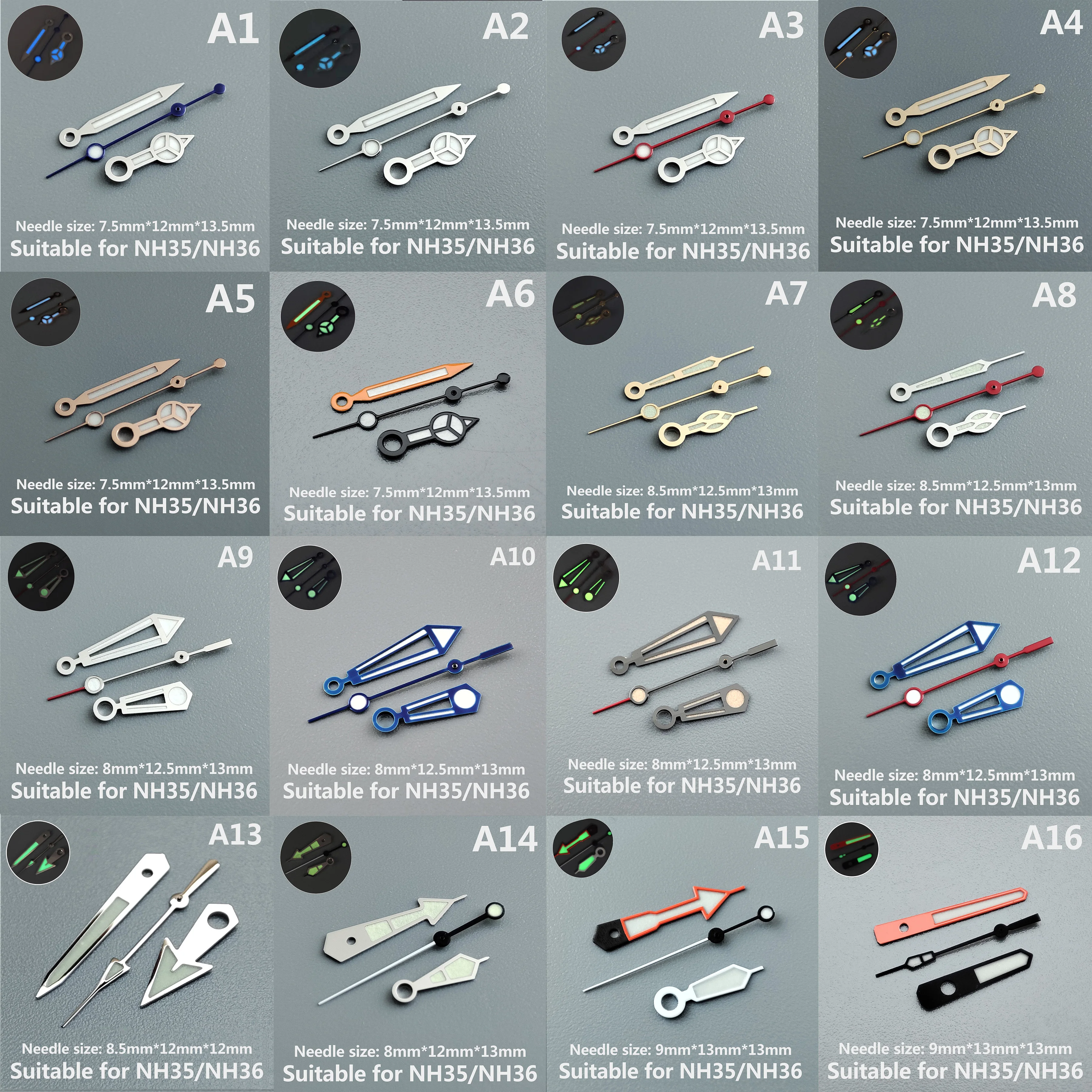 Аксессуары для часов, указка для часов NH35, стрелки с белым и зеленым светом, подходит для движений NH35, NH36