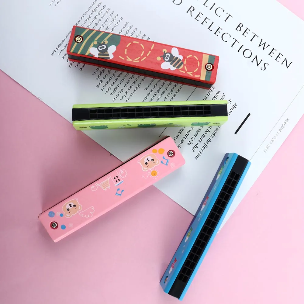 Аксессуары для детских игрушек, музыкальные инструменты, 16 отверстий, двухрядная душка, мультяшный цвет, деревянная Губная гармошка, мелодка