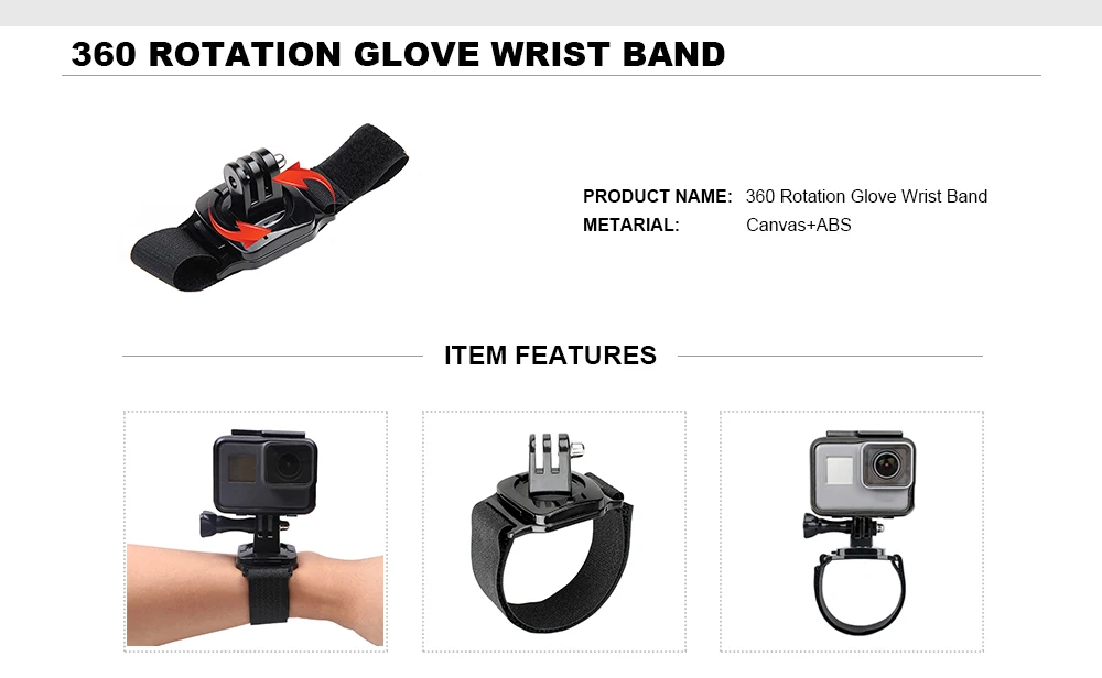Крепление на запястье с поворотом на 360 градусов. Регулируя Трехходовой Регулируемый поворотный рычаг, вы можете настроить камеру gopro под любым углом через комбинацию. Тогда вы не пропустите хорошие фотографии из-за угла наклона камеры.