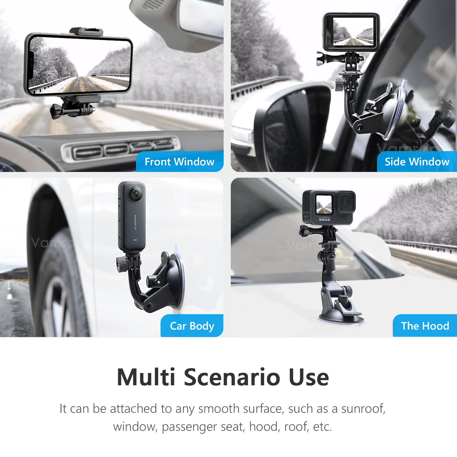 Аксессуары Vamson для Insta360 X3 Автомобильный кронштейн на присоске Спортивное крепление для экшн-камеры Go Pro Hero 12 11 10 9 Аксессуары