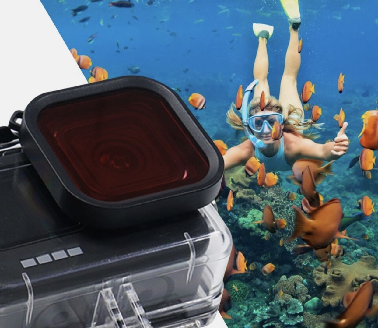 В набор KingMa для GoPro Hero 11, Hero 10, Hero 9 входят три подводных светофильтра для дайвинга, серфинга, подводного плаванья, каякинга, водных лыж и другие водных видов спорта. Используются фильтры для коррекции цвета в съемках, подходят для различных водных зон. Погружение до 25 метров.