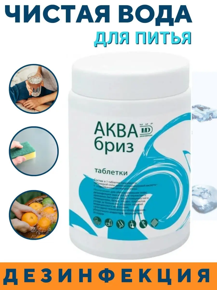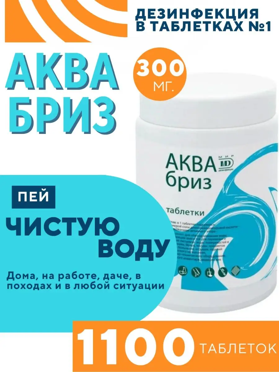 АКВАбриз хлорные таблетки для обеззараживания воды питьевой, 300мг 1100таб, дезинфекция поверхностей