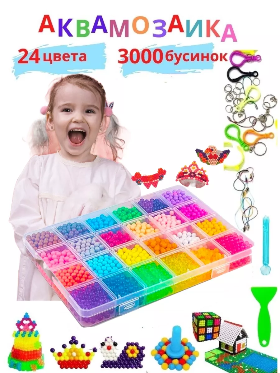 Артикул 32922279 Количество элементов 3000 бусинок; 24 цвета; большая